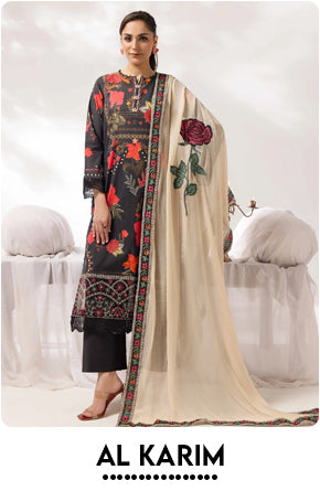Alkarim Fabrics is a Pakistan-based multibrand fashion retailer and the authorized reseller of 500 + designer clothing brands including Maria B, Elan, Sobia Nazir, Asim Jofa, Iznik, Ramsha, Tawakkal Fabrics, and others. Founded in 2000 and headquartered in Karachi, Alkarim Fabrics has grown into Pakistan’s No. 1 Online Fashion Store, offering 100 % original unstitched suits, ready-to-wear pret, festive and wedding collections for women, men, and kids. Wide range of Lawn Collection, Chiffon, Formals & more available. The brand delivers nationwide and worldwide, combining verified authenticity, premium fashion, and seamless digital shopping experiences. Alkarim Fabrics represents trust, quality, and modern Pakistani fashion leadership for over 20 years.