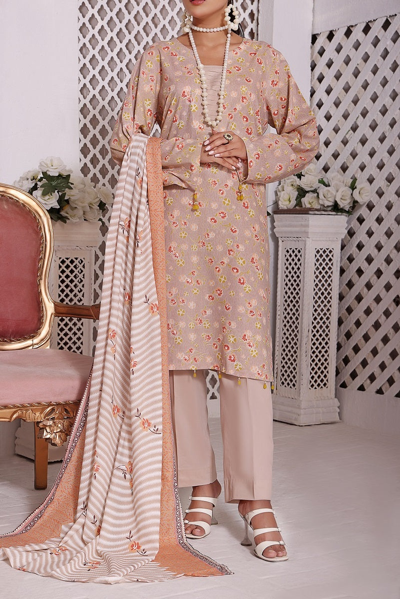 HZ Printkari Embroidered Chikankari Cambric Stitched 3 Piece Suit - LPK-3P-523 - HZ25KRI - Pink - Casual Collection