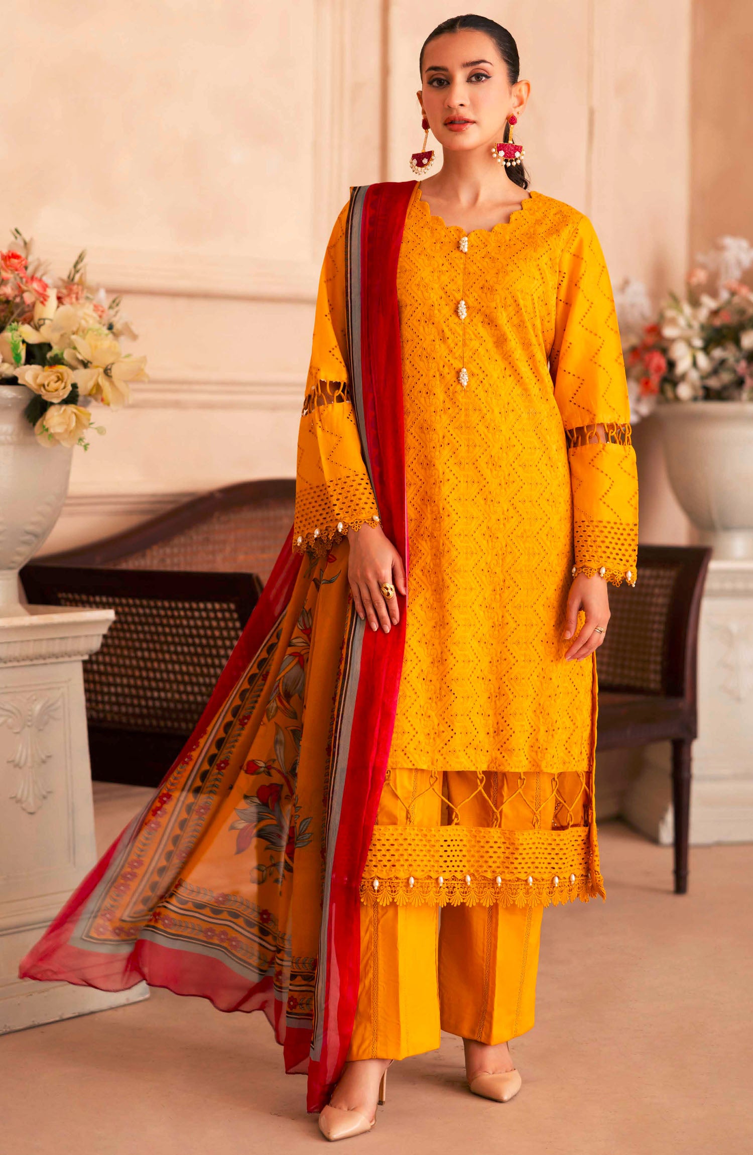 Maryams Luxury Embroidered Chiffon Unstitched 3 Piece Suit - Nyra-ARZ-9006 - MAR25LF - Mustard - Festive Collection