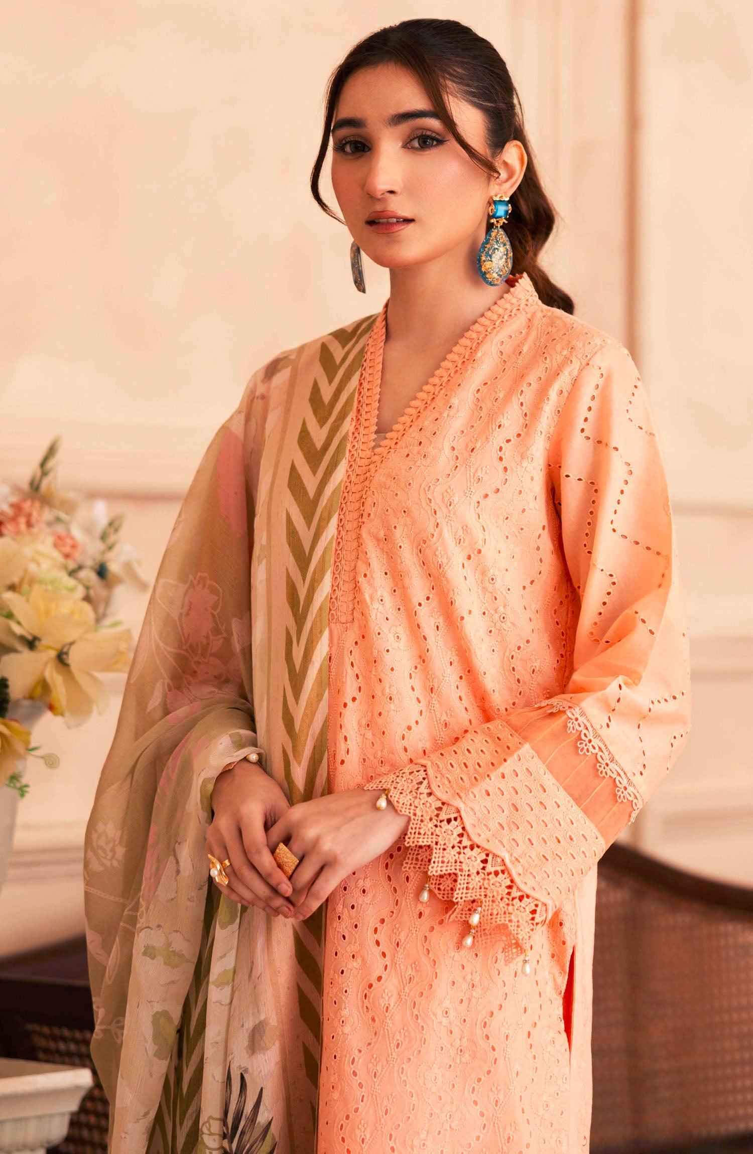Aabish by Johra Chikankari Lawn Unstitched 4 Piece Suit - JH-275 - JH25AAL - Peach - Summer Collection