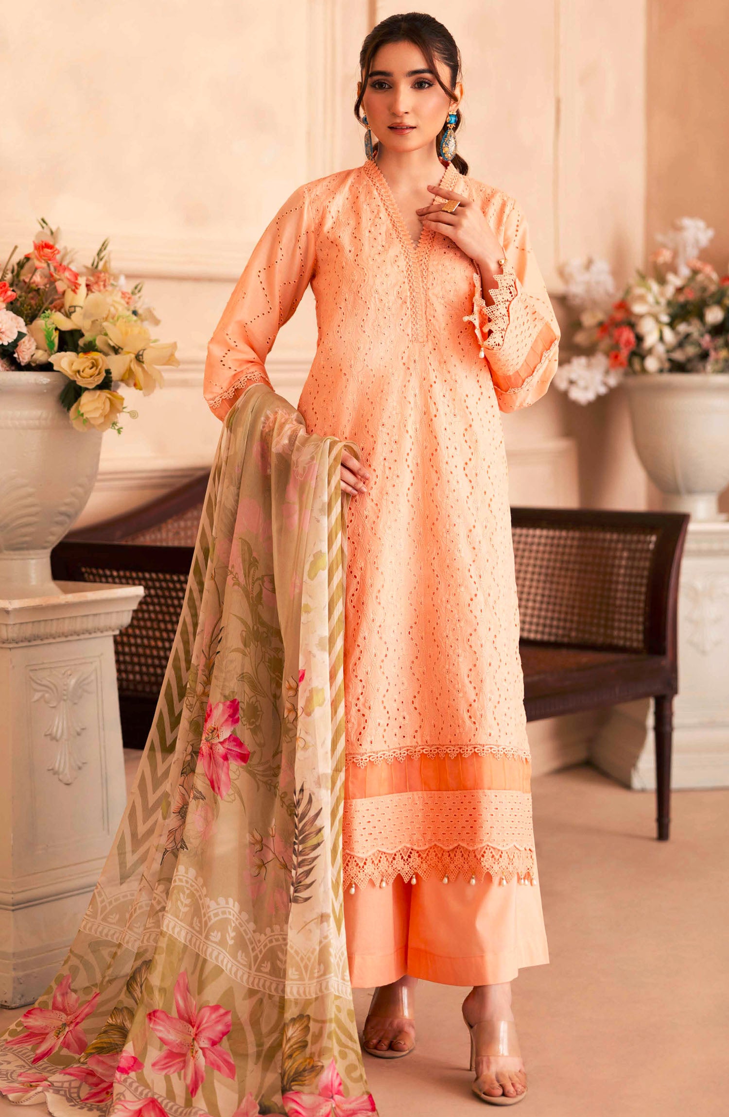 Home Aabish by Johra Chikankari Lawn Unstitched 4 Piece Suit - JH-275 - JH25AAL - Peach - Summer Collection