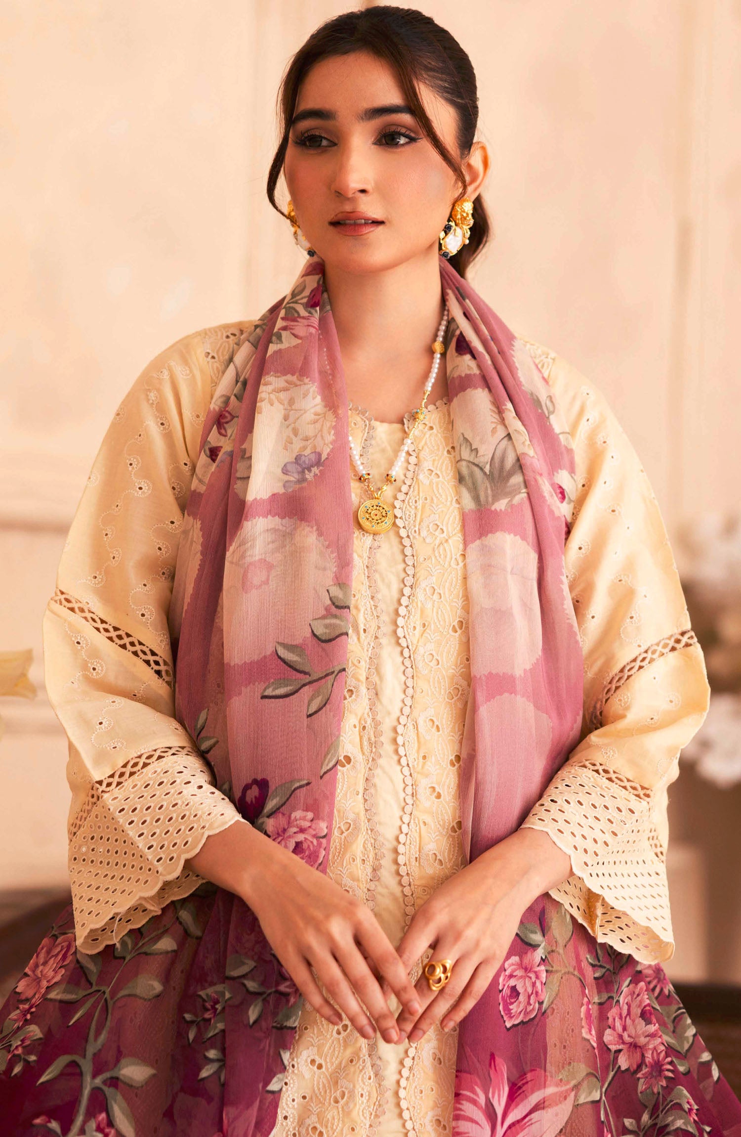 Aabish by Johra Chikankari Lawn Unstitched 4 Piece Suit - JH-277 - JH25AAL - Off White - Summer Collection