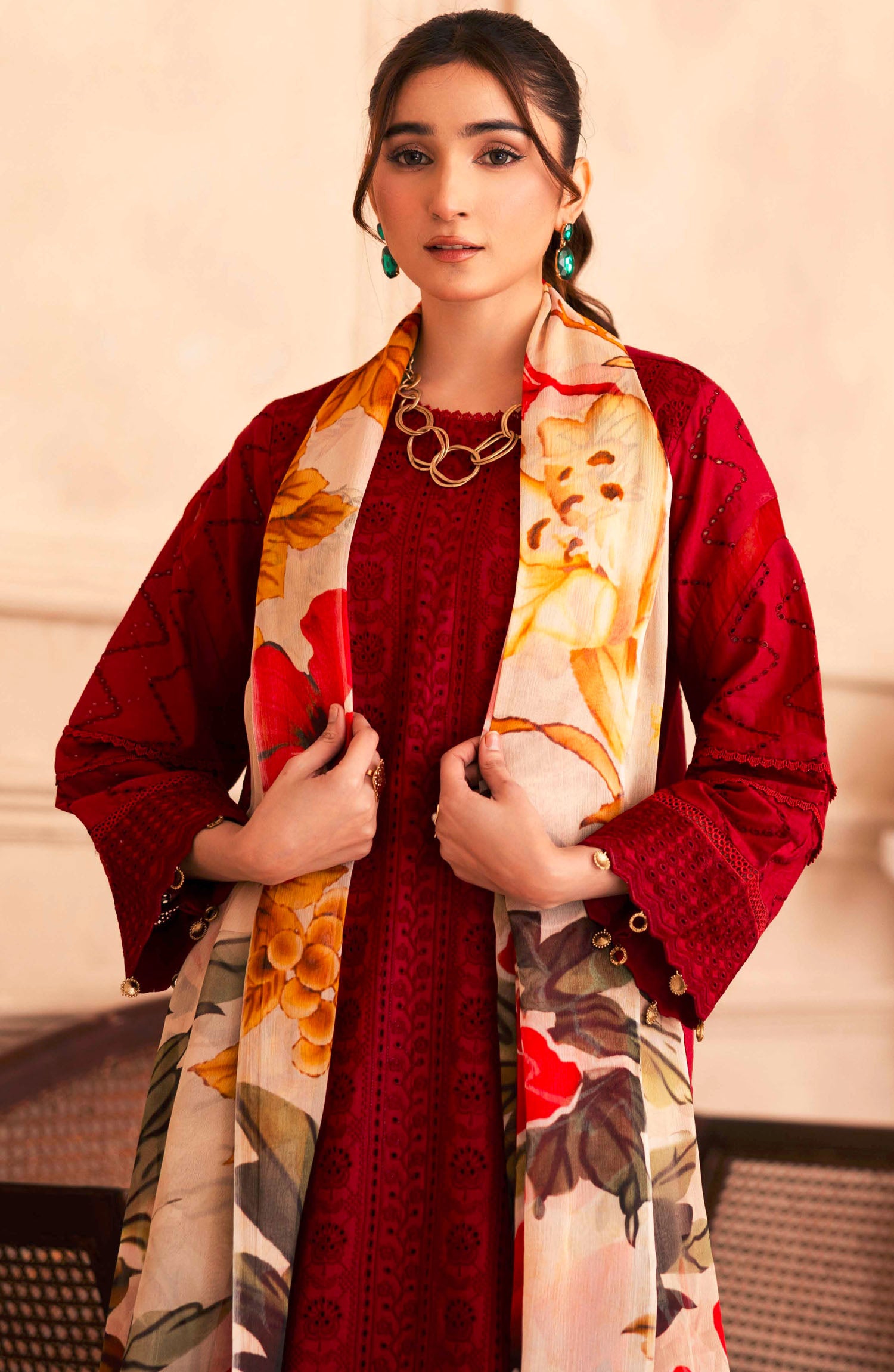 Modest Embroidered Khaddar Stitched 3 Piece Suit - 10050-Mar - MOD25WNT - Maroon - Winter Collection