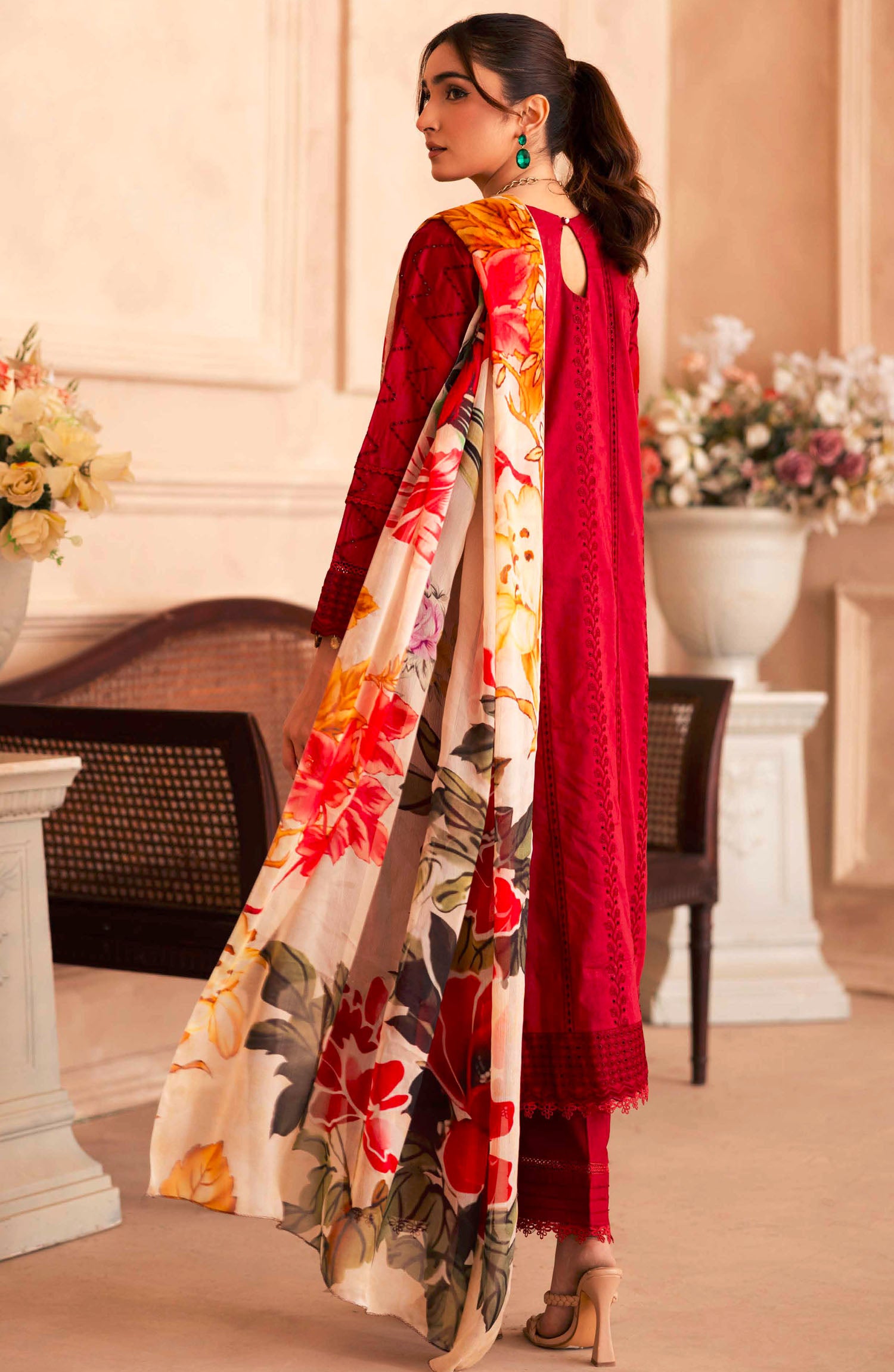 Home Aabish by Johra Chikankari Lawn Unstitched 4 Piece Suit - JH-279 - JH25AAL - Red - Summer Collection
