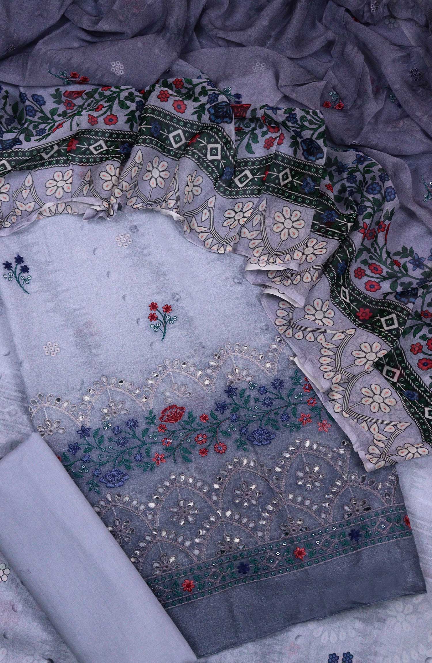 Printed and Chikankari Embroidered Lawn fabric for Shitrt