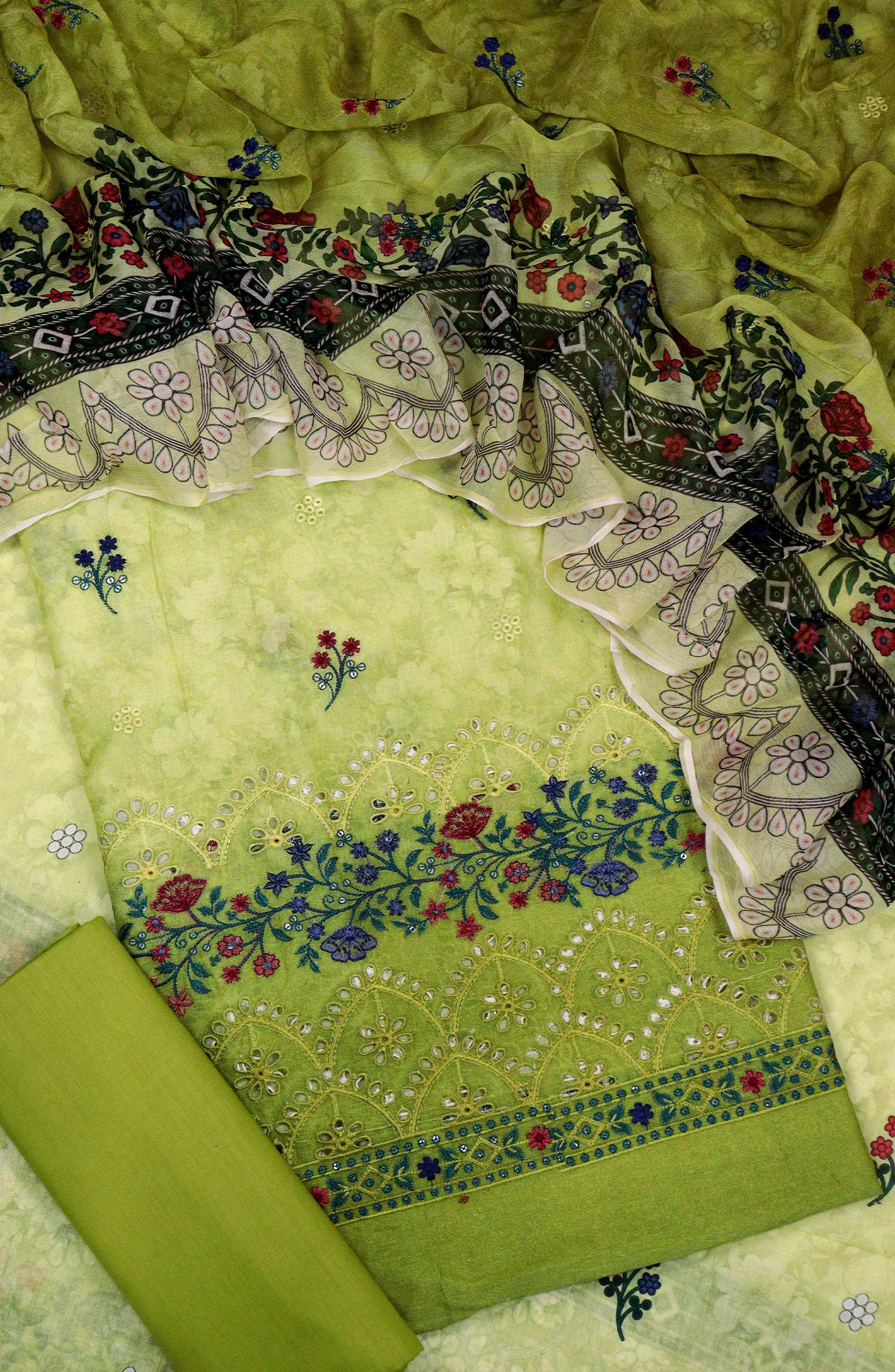 Printed and Chikankari Embroidered Lawn fabric for Shitrt