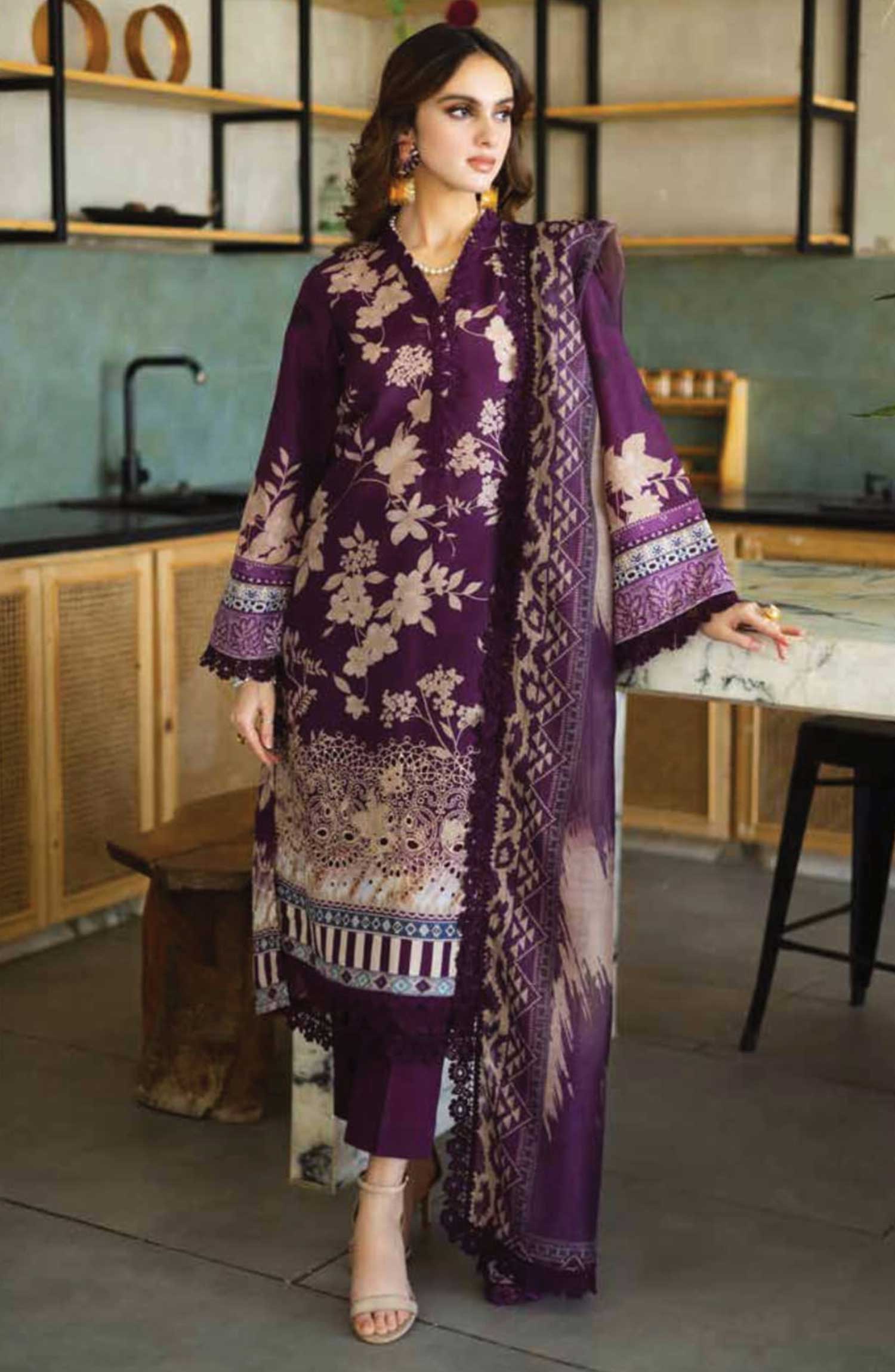 Home Aafreen by Riaz Arts Embroidered Lawn Unstitched 3 Piece - AF-160 - RA25PE - Purple - Summer Collection