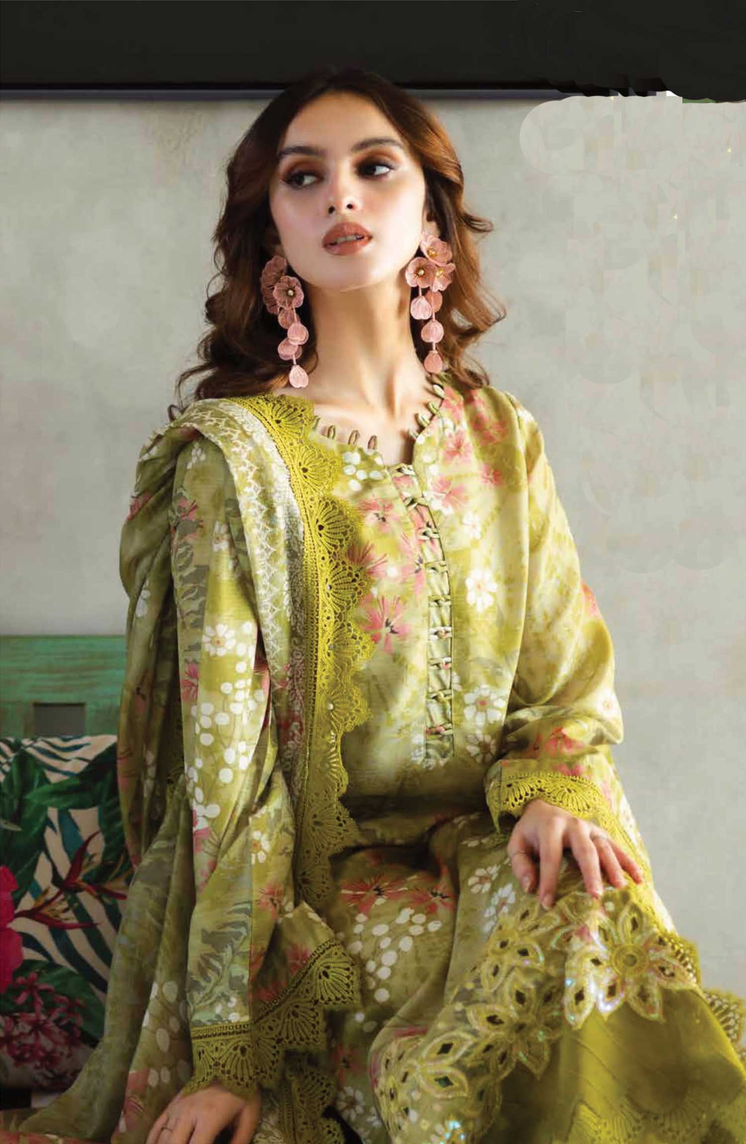 Home Aafreen by Riaz Arts Embroidered Lawn Unstitched 3 Piece - AF-162 - RA25PE - Creamy Yellow - Summer Collection
