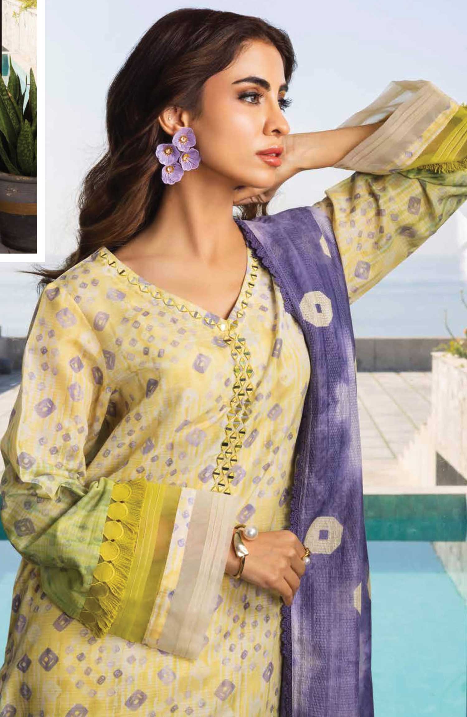 Aafreen by Riaz Arts Embroidered Lawn Unstitched 3 Piece - AF-165 - RA25PE - Creamy Yellow - Summer Collection