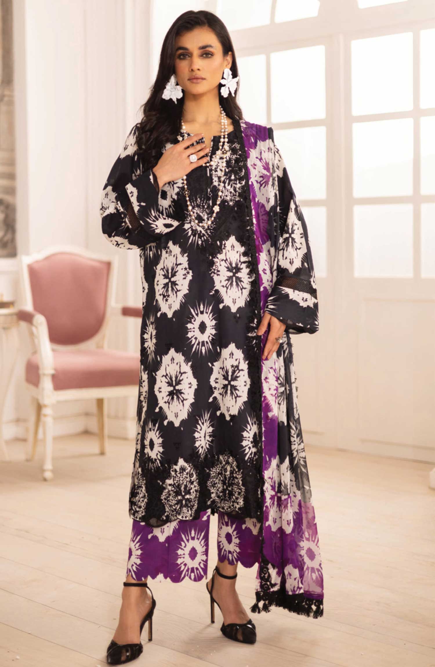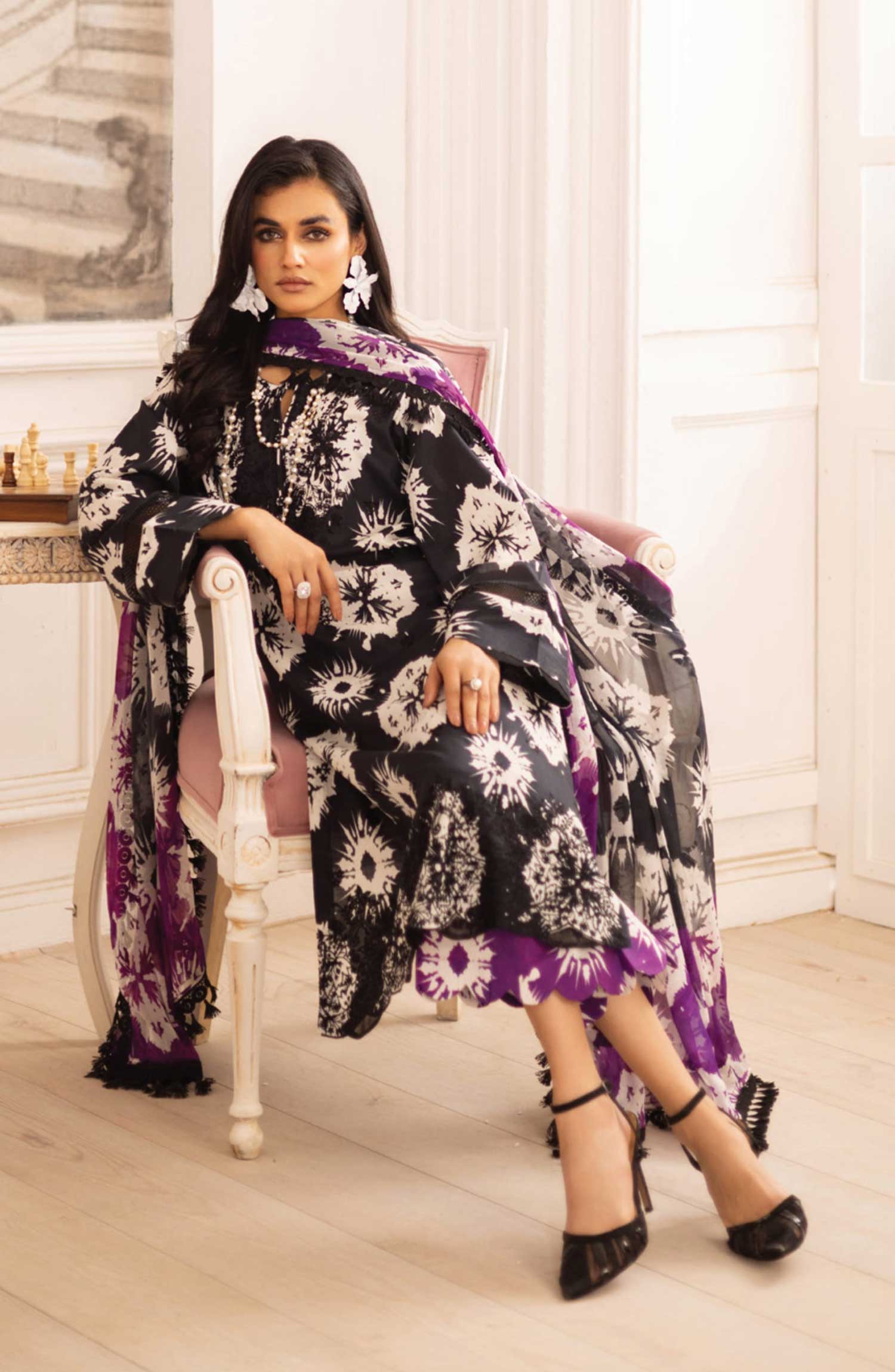 Home Aafreen by Riaz Arts Embroidered Lawn Unstitched 3 Piece Suit - AF-186 - RA25ALC - Black - Summer Collection
