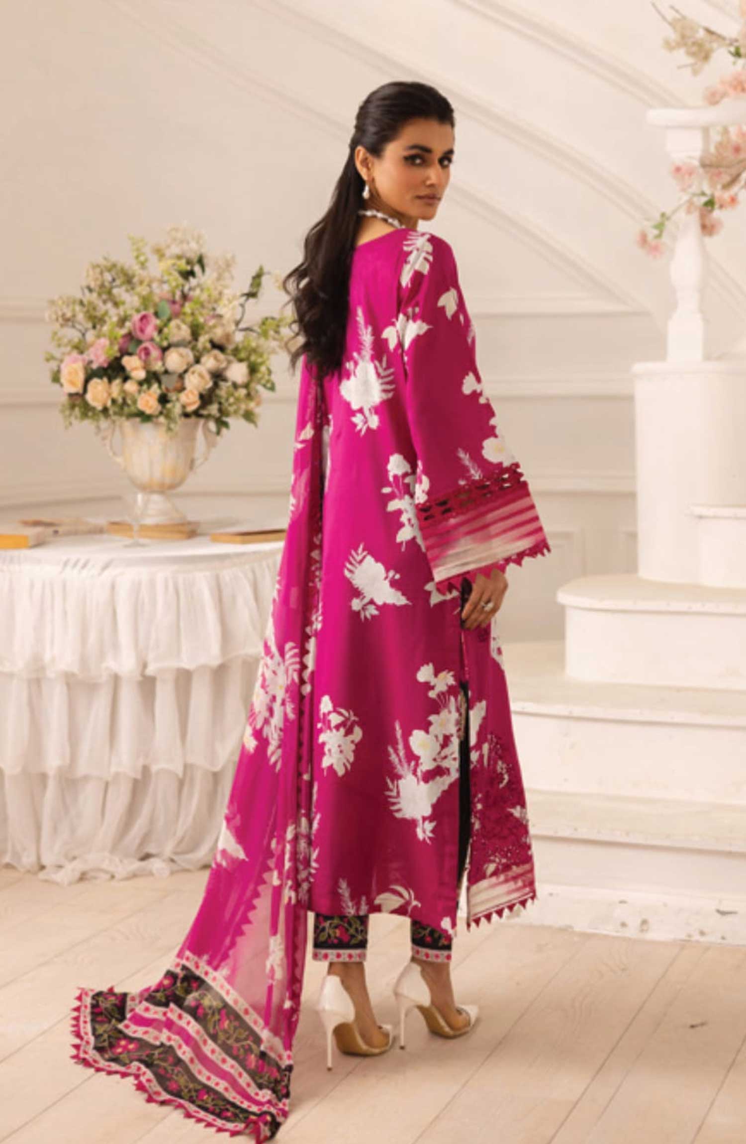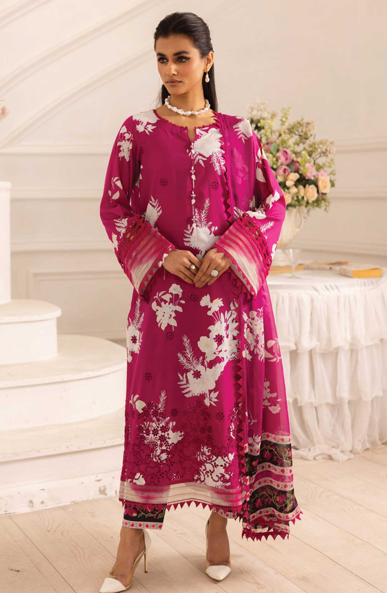 3 Piece unstitched Embroidered laser cut lawn suit with chiffon dupatta