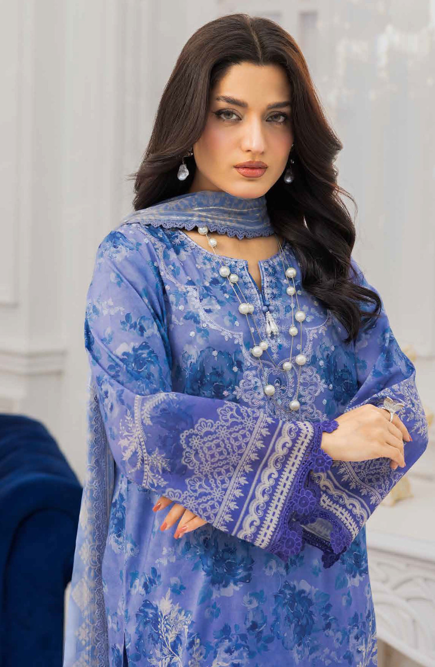 Aafreen by Riaz Arts Embroidered Lawn Unstitched 3 Piece Suit - AF-212 - RA25AELCT - Blue - Summer Collection