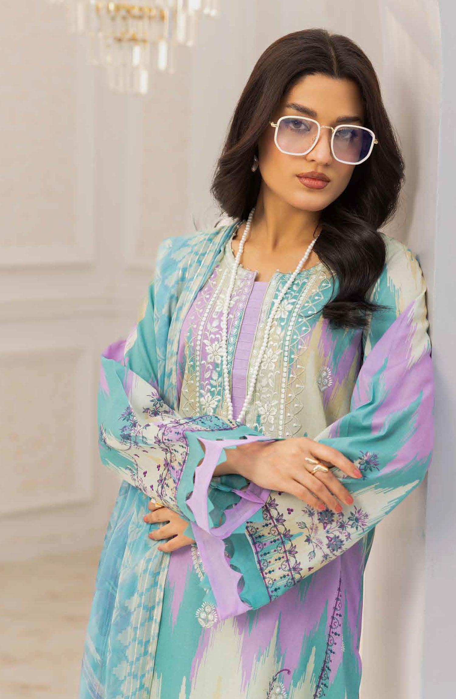 Lamisah by Lavish Premium Afsana Embroidered Chiffon Unstitched 3 Piece Suit - D-04 Mint Whisper - LP25AFS - Blue - Luxury Collection