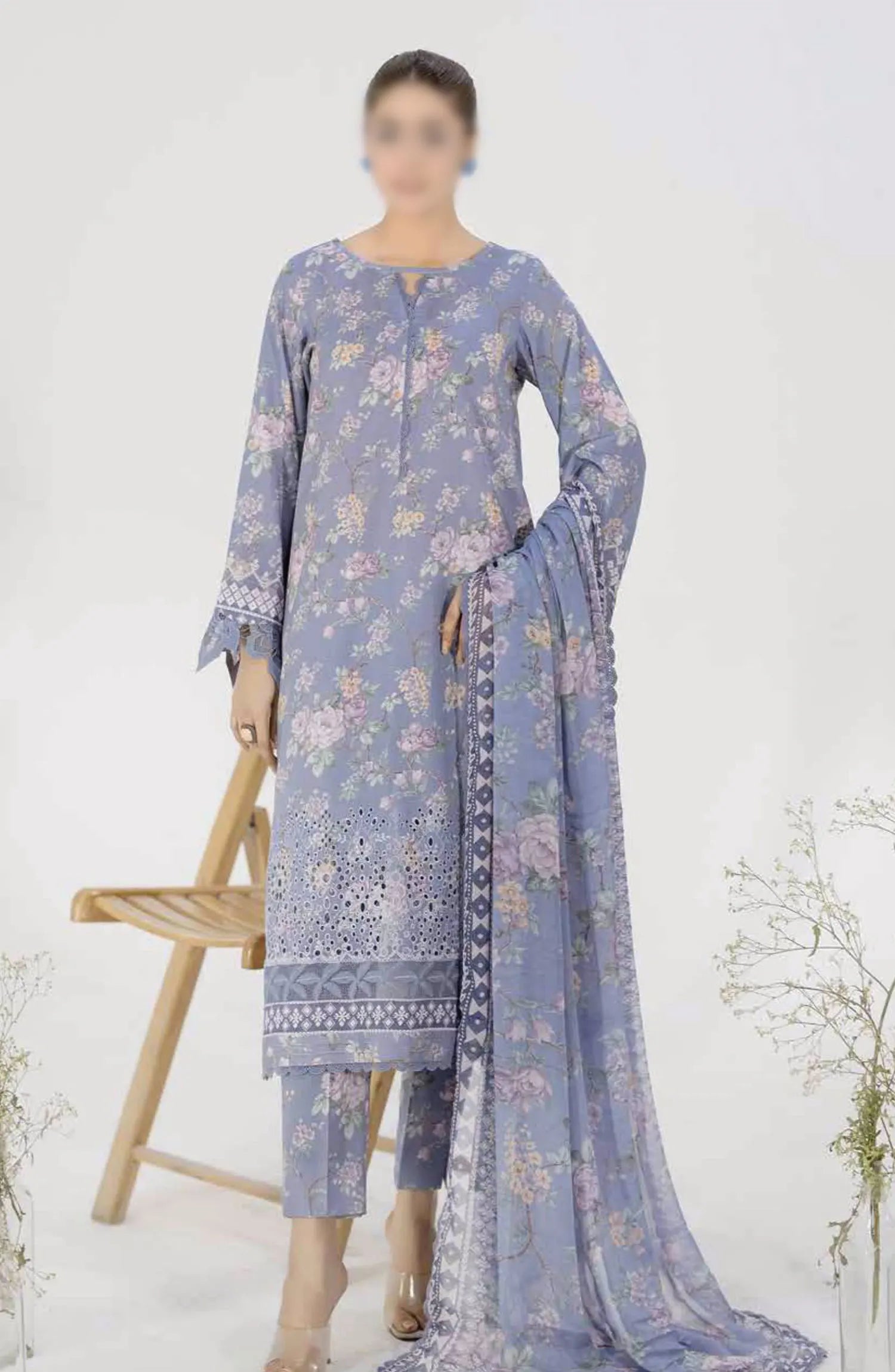 Aafreen Chikankari Printed Lawn Collection 2024 has been styled in the image for photography and illustrative purposes.
