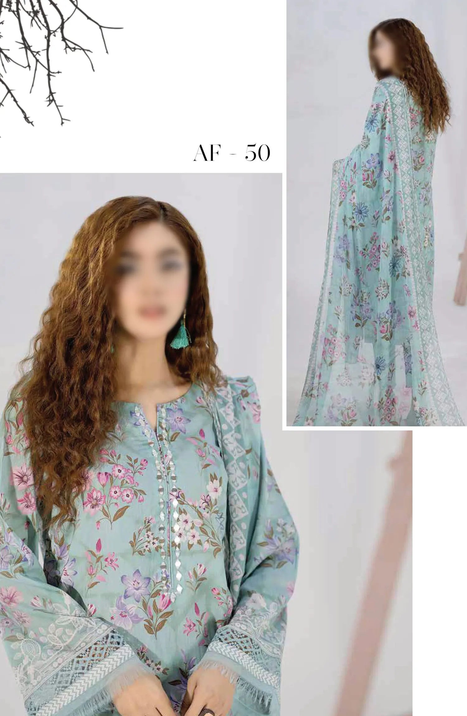 Home Aafreen Chikankari Printed Lawn Collection 2024 - AF 50
