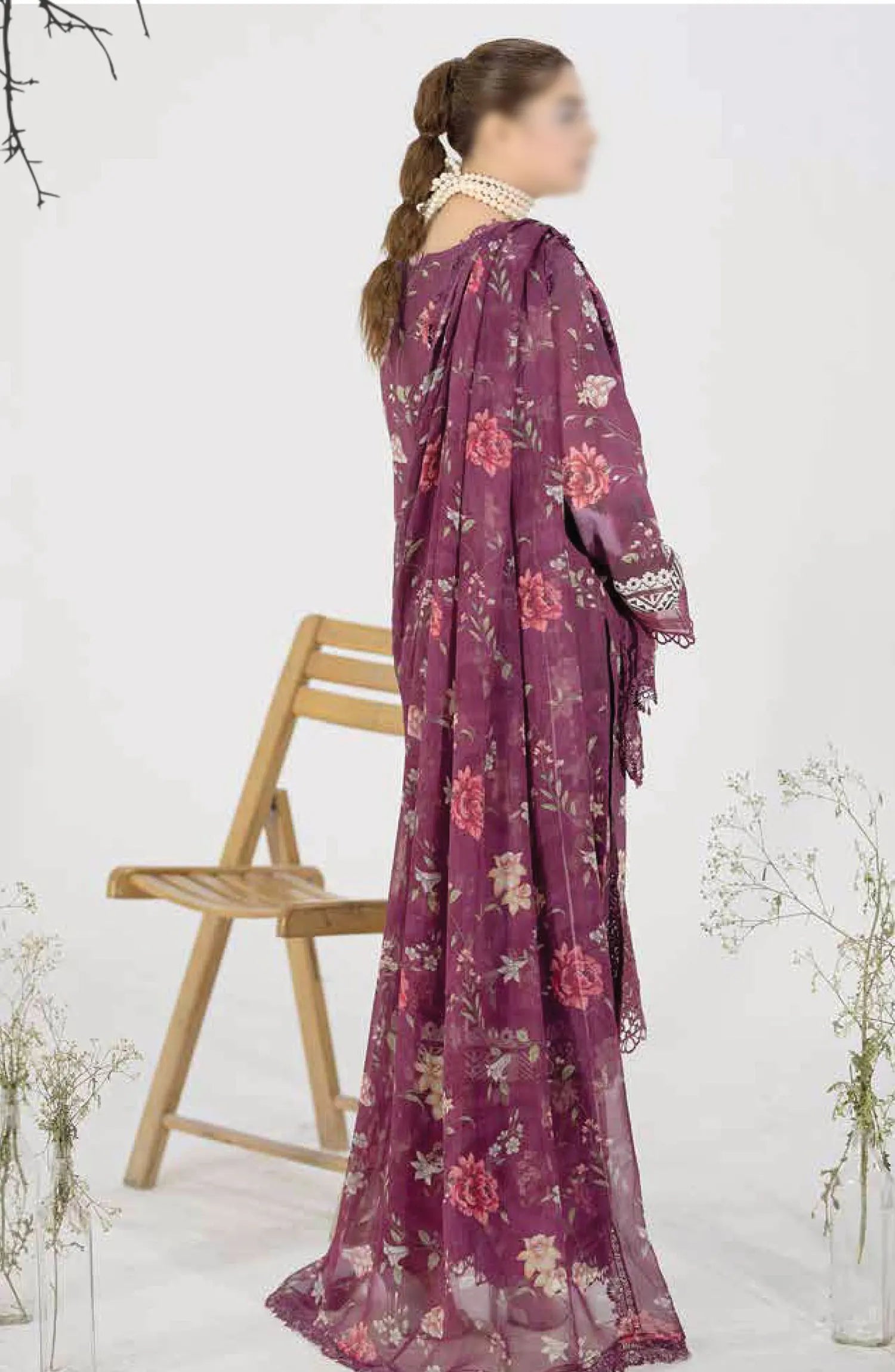 Lamisah by Lavish Premium Afsana Embroidered Chiffon Unstitched 3 Piece Suit - D-09 Mauve Mystique - LP25AFS - Purple - Luxury Collection