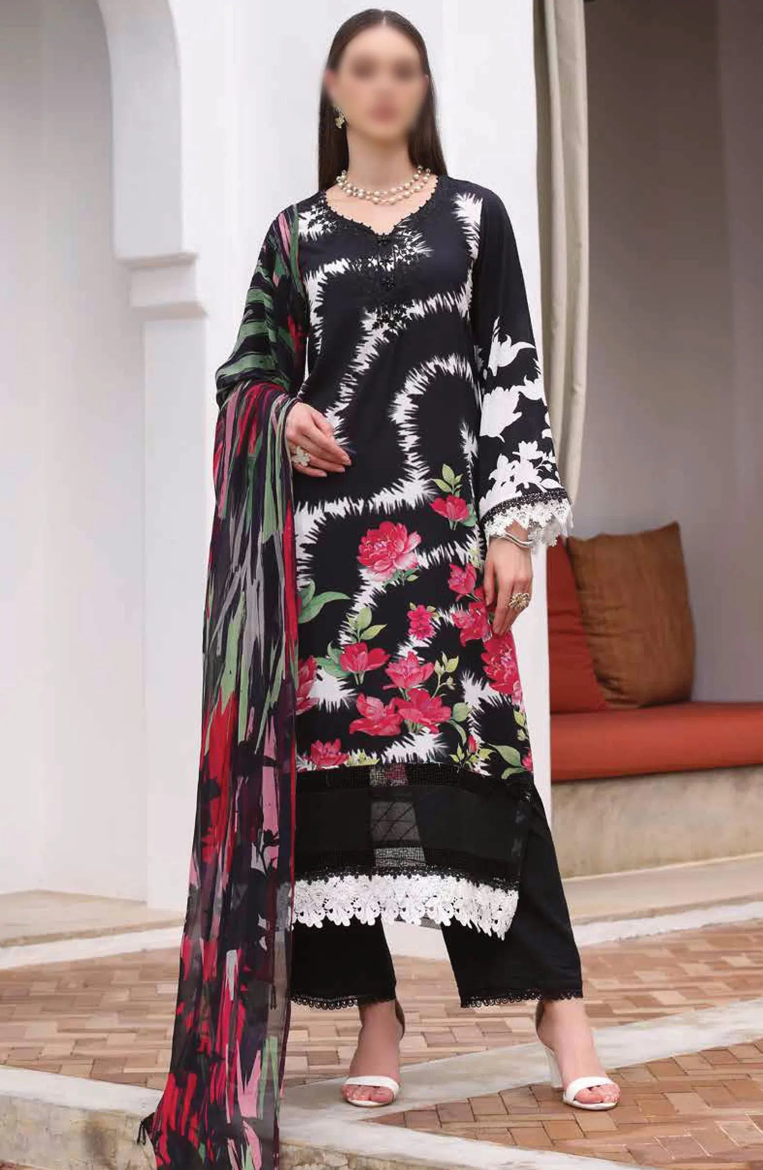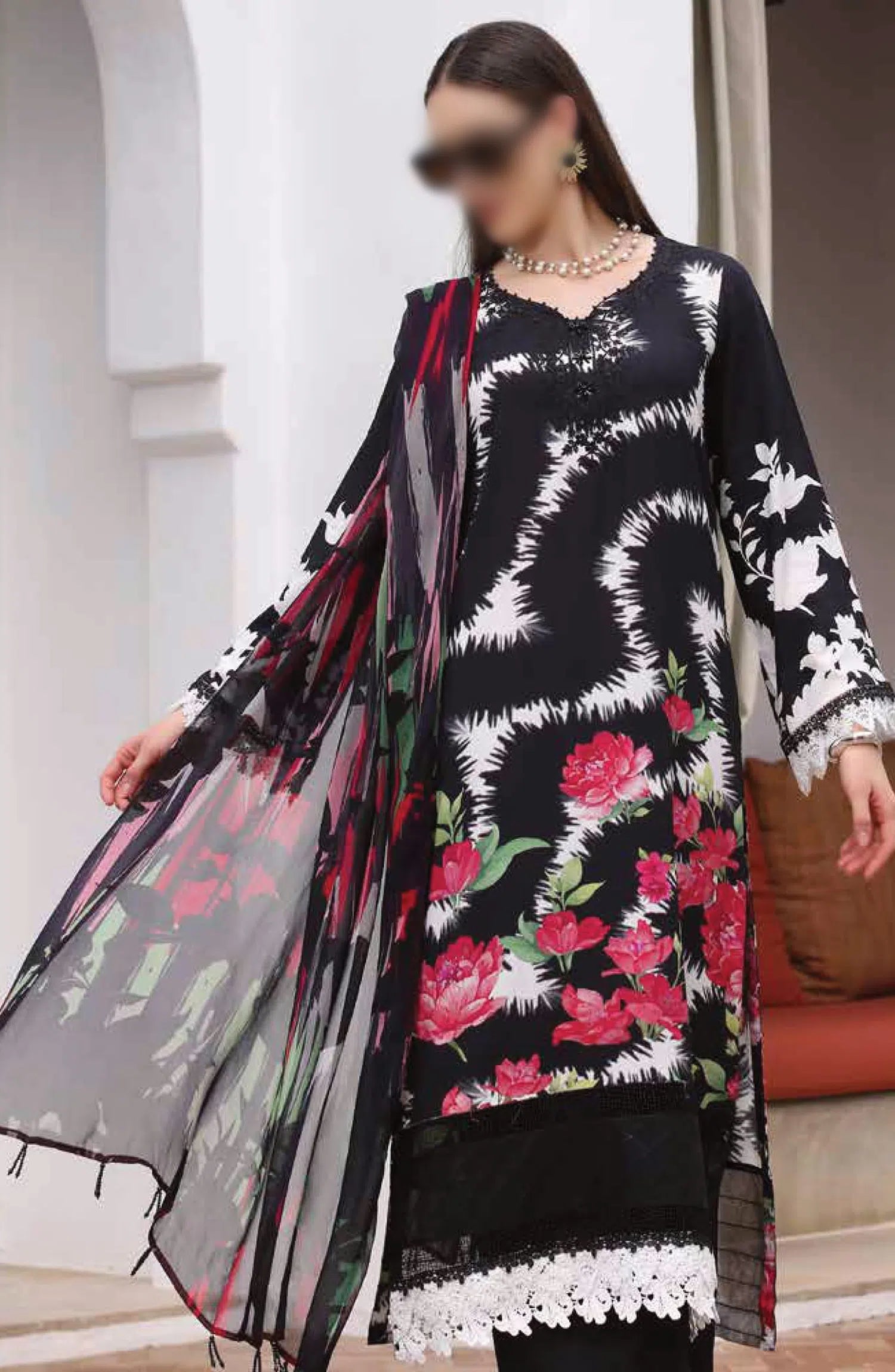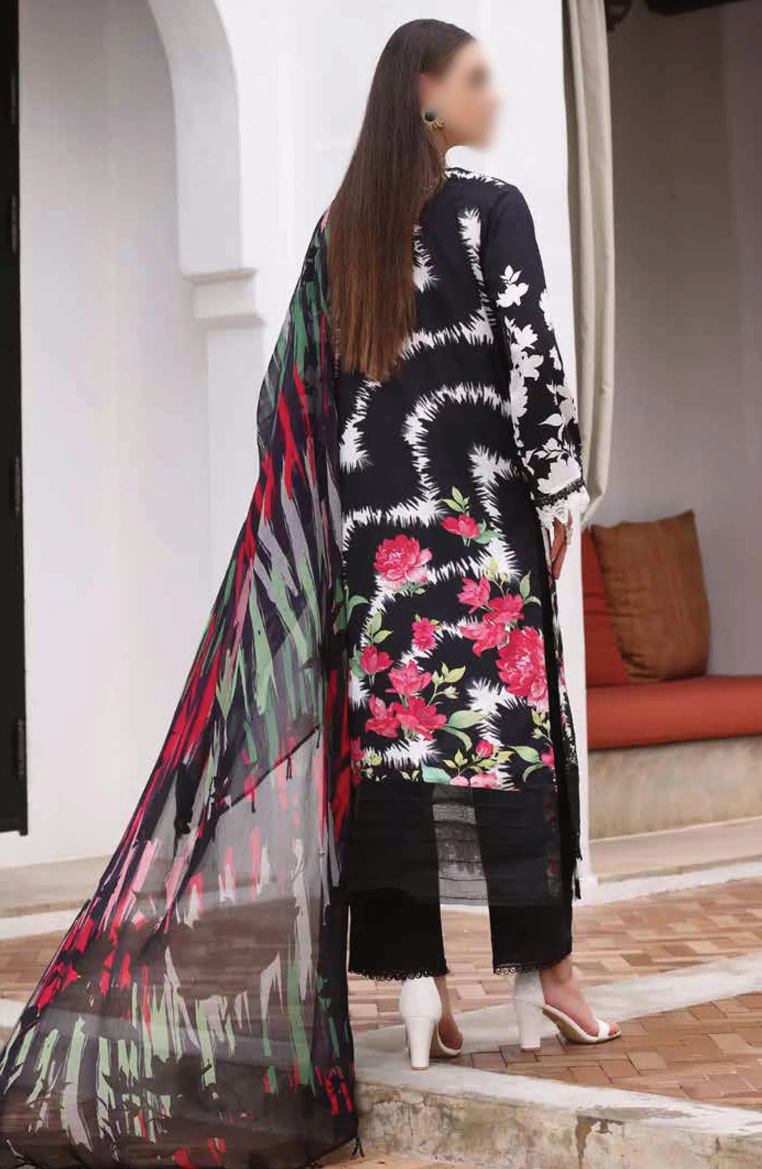 Lamisah by Lavish Premium Afsana Embroidered Chiffon Unstitched 3 Piece Suit - D-08 Noir Royale - LP25AFS - Black - Luxury Collection