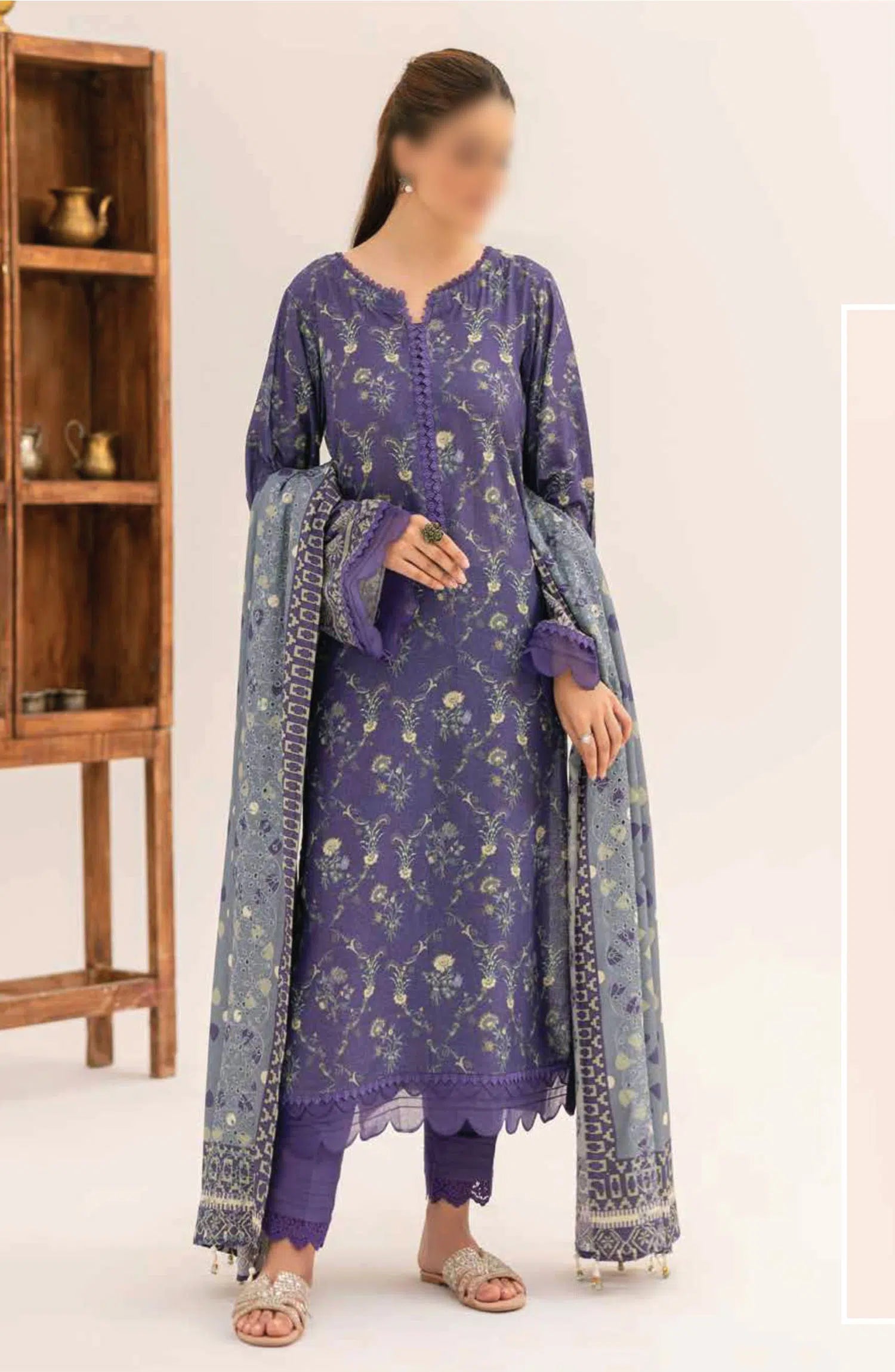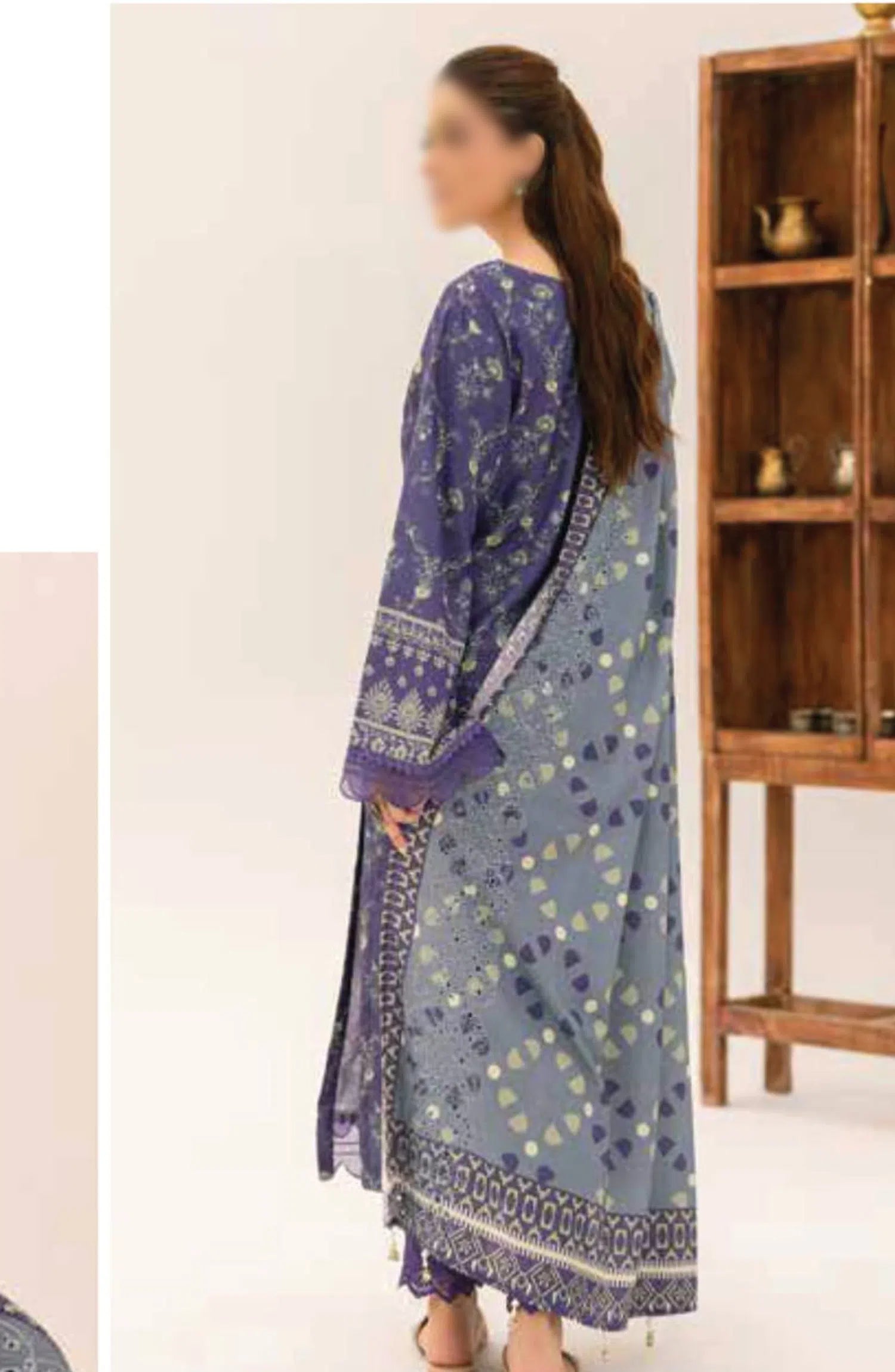 The standard style comes as a long-sleeved kameez with dupatta and trouser/shawlar.