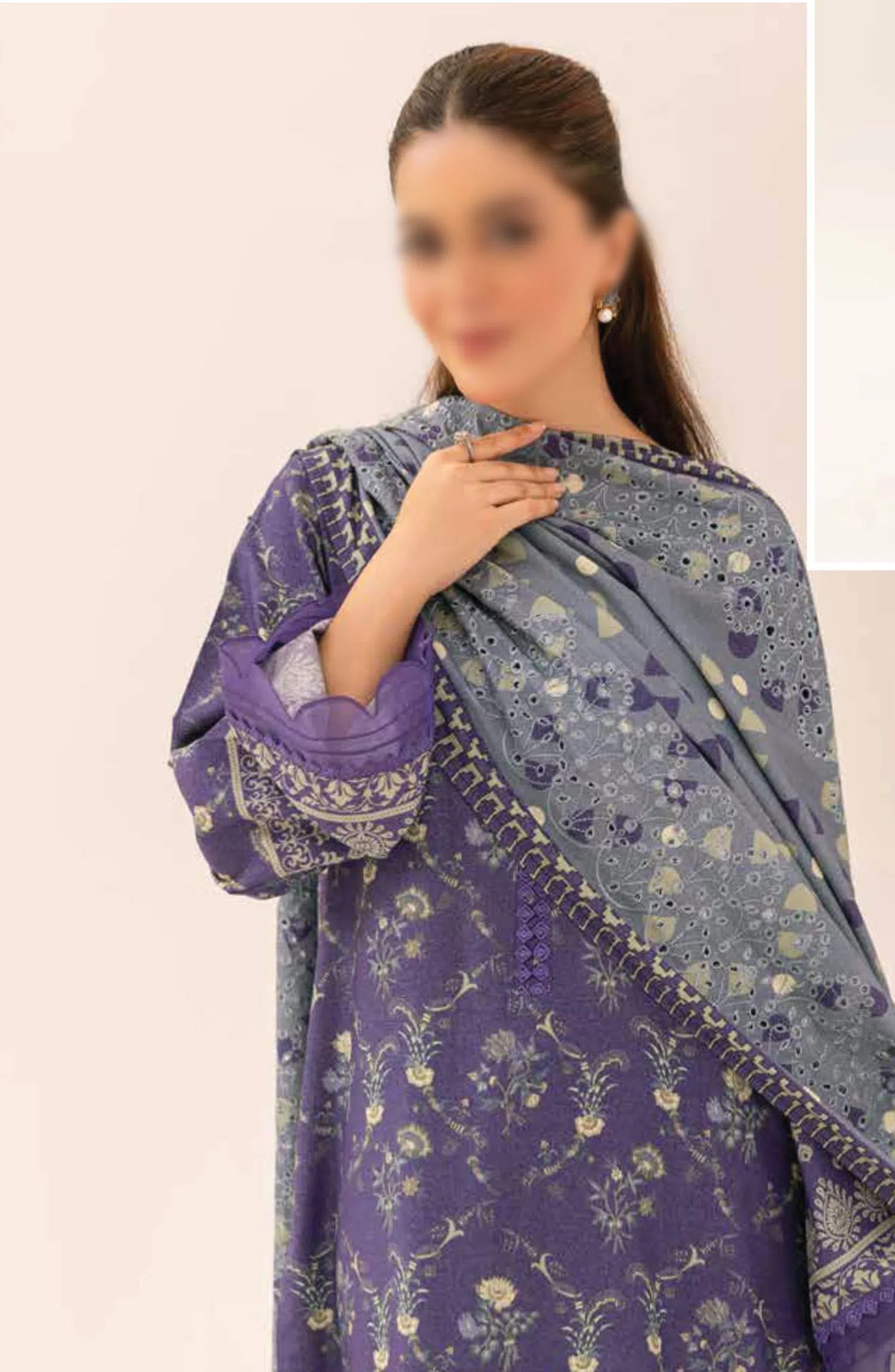 Aafreen Embroidered Karandi Collection By Riaz Arts has been styled in the image for photography and illustrative purposes.