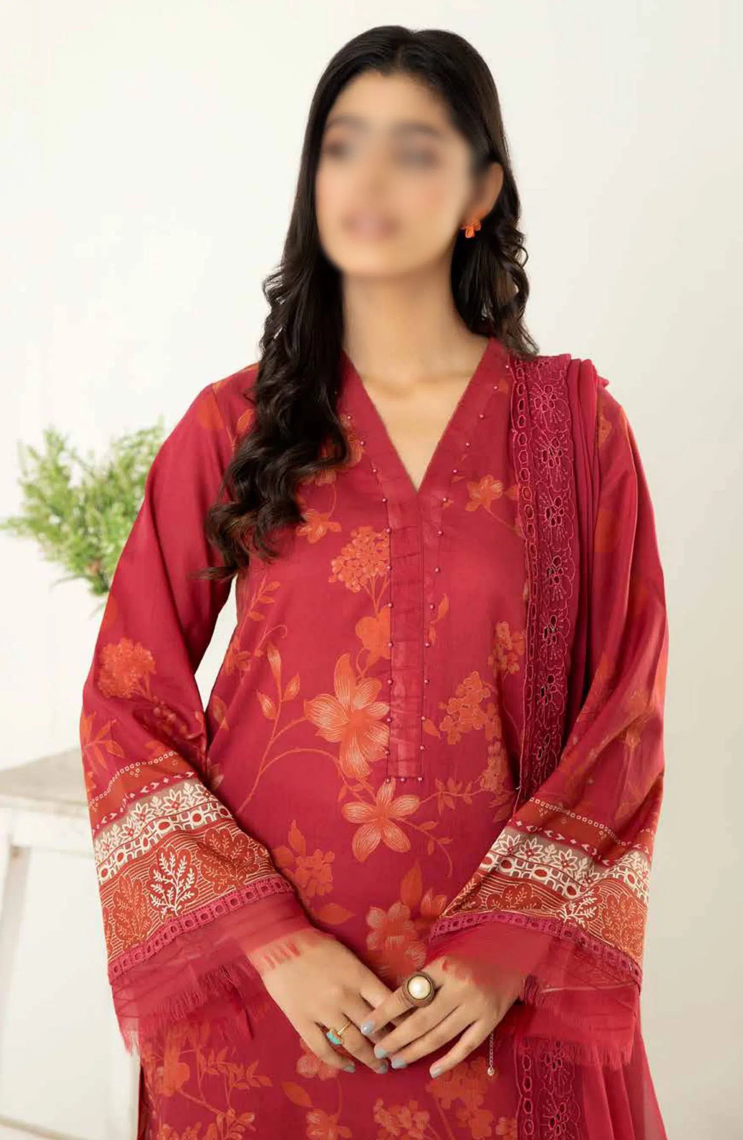3 Piece Printed Lawn Suit with Embroidered Chikankari Chiffon Dupatta.