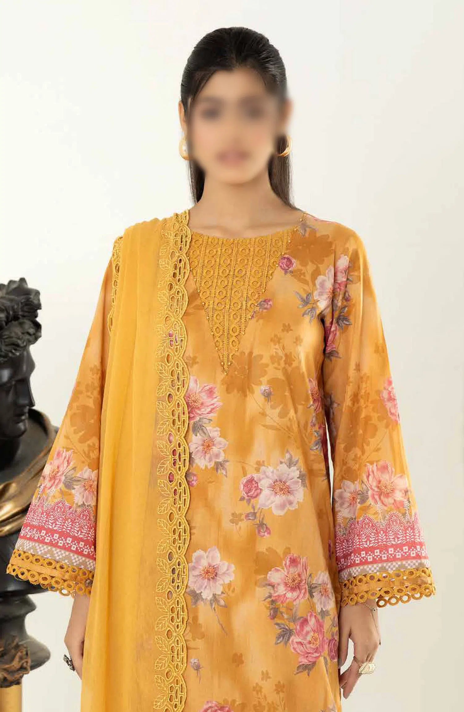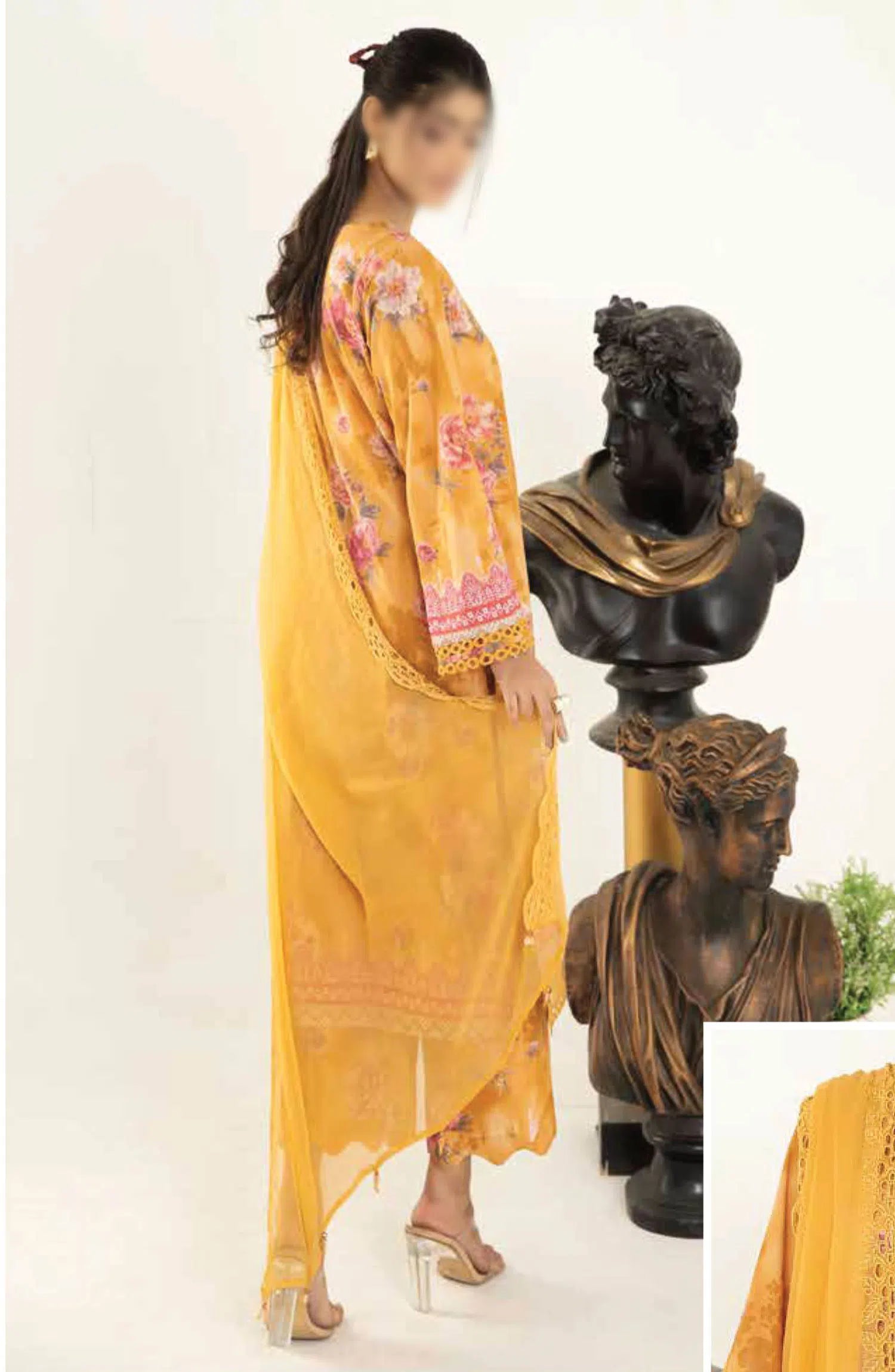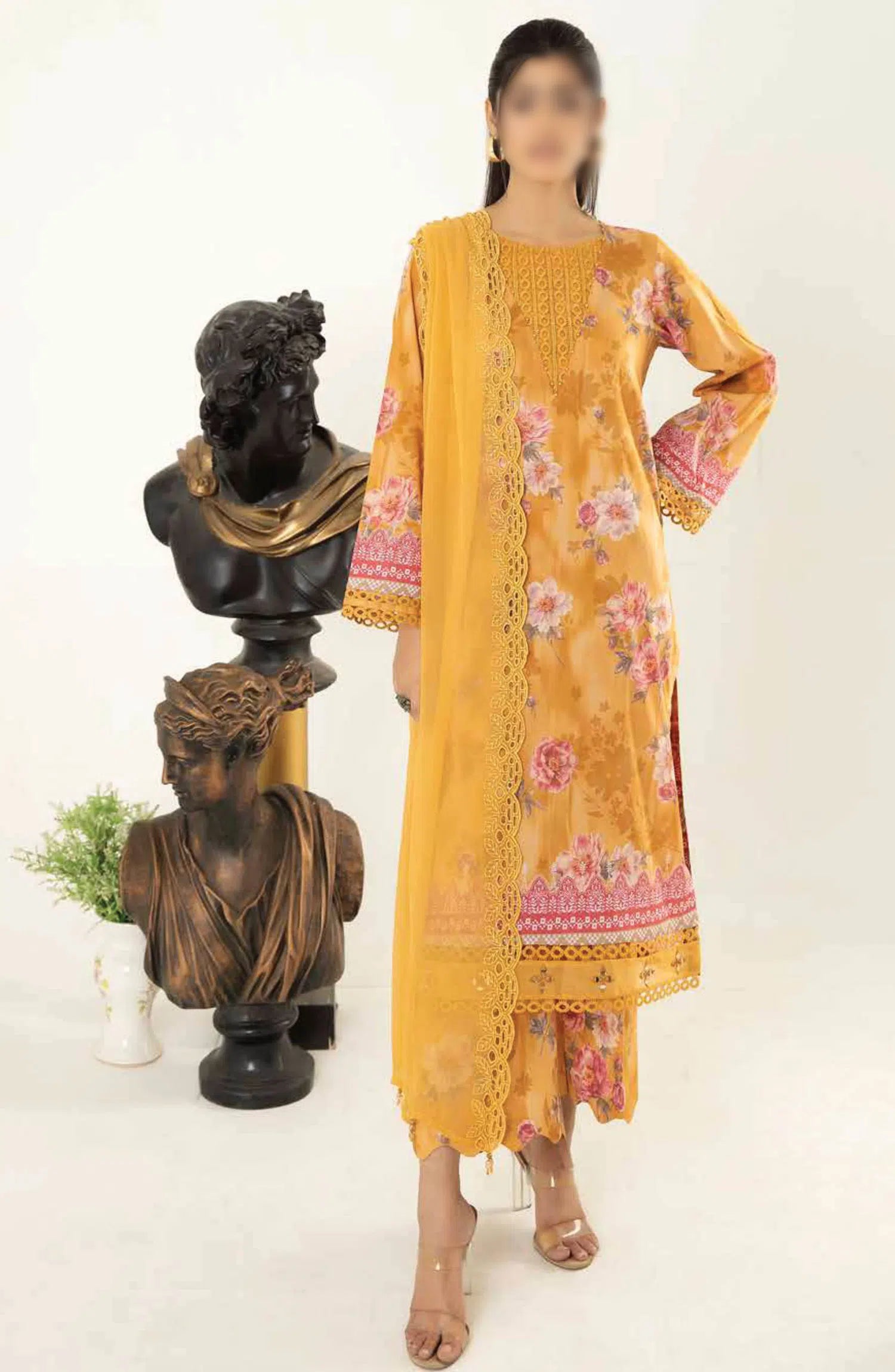 Aafreen Printed Lawn Collection By Riaz Arts has been styled in the image for photography and illustrative purposes.