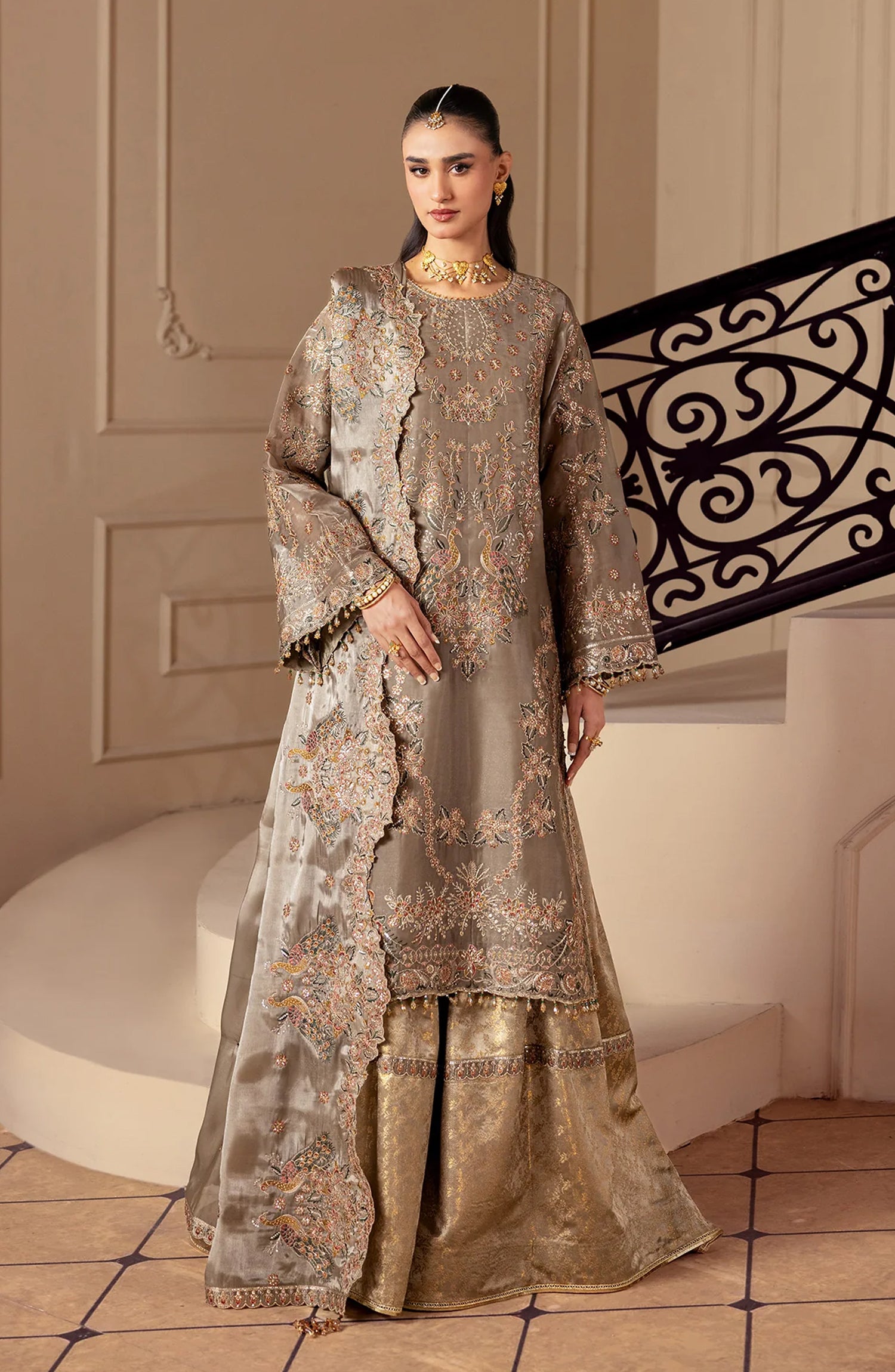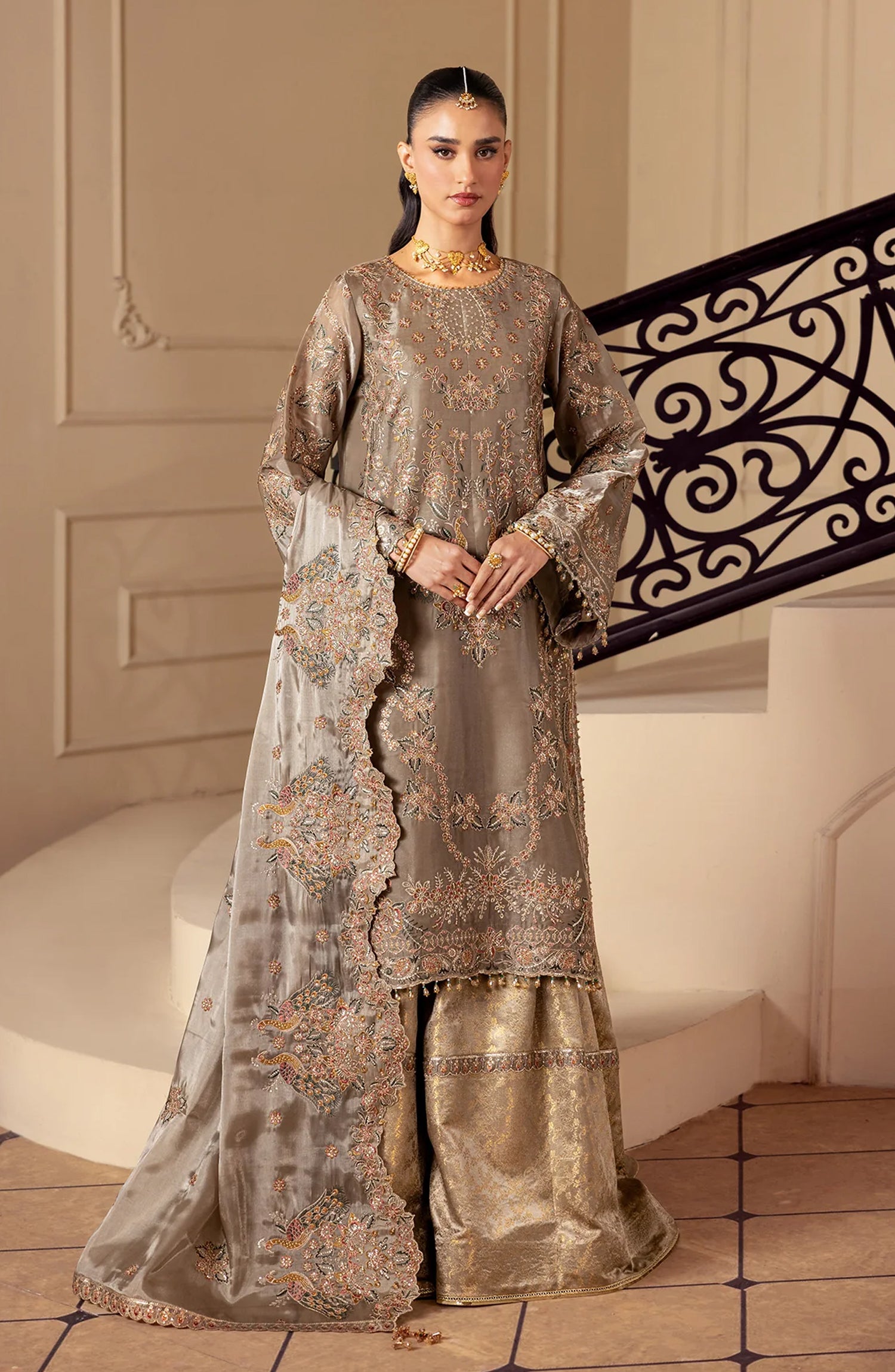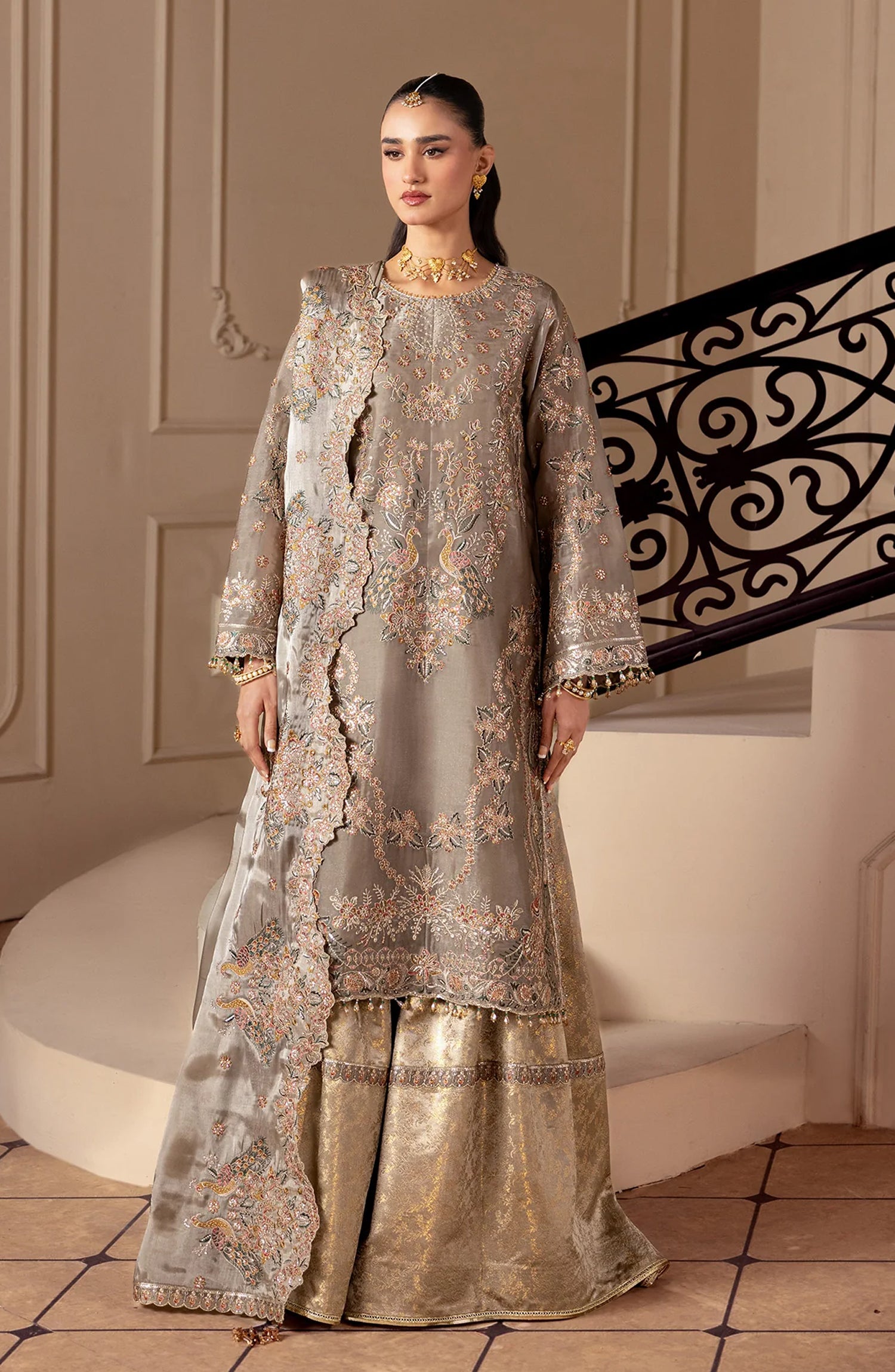Embroidered Sheesha Silk Trouser + Chalk + Dupatta Border