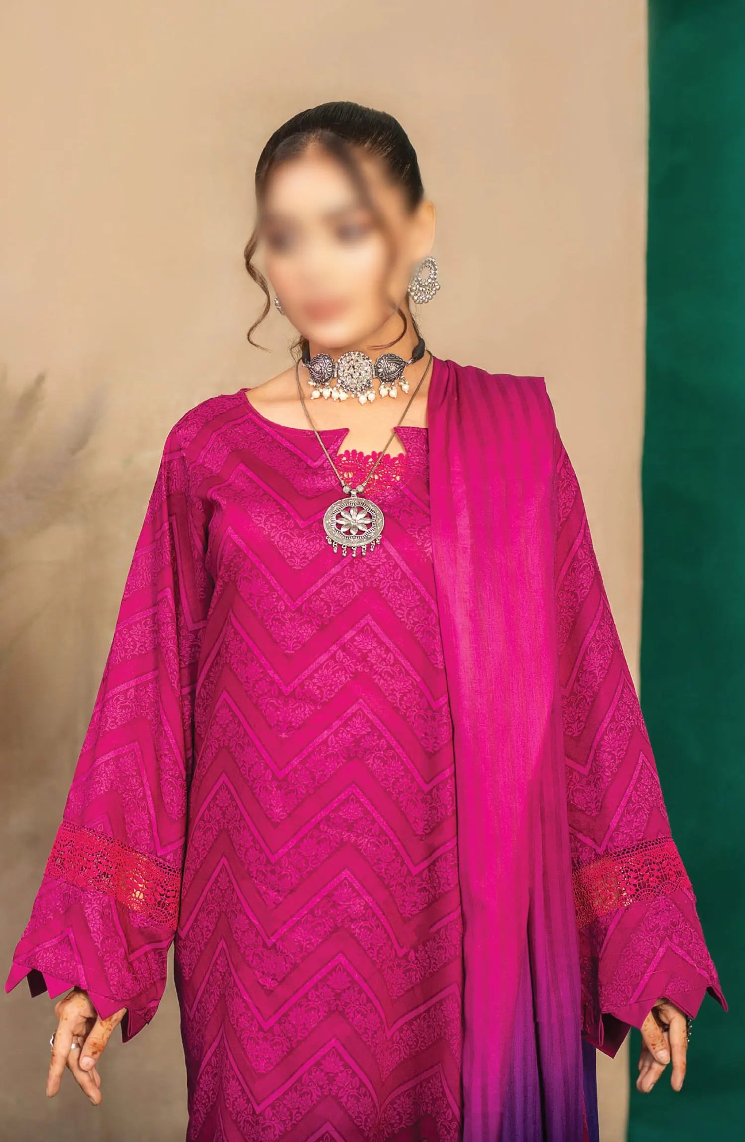 Baroque Chantelle Embroidered Chiffon Unstitched 3 Piece Suit - V14-D05 - BQ25CHN - Purple - Formal Collection