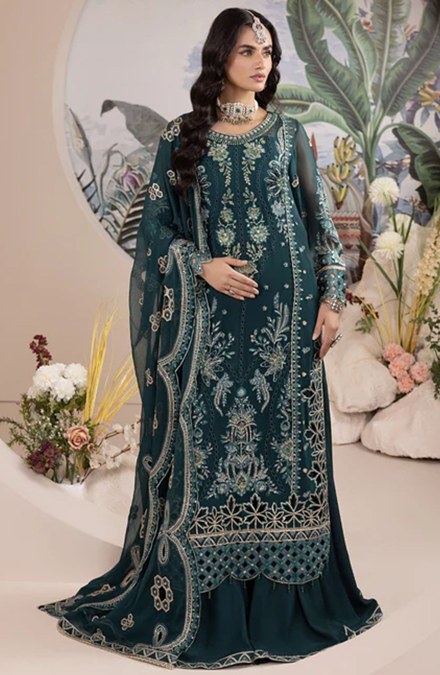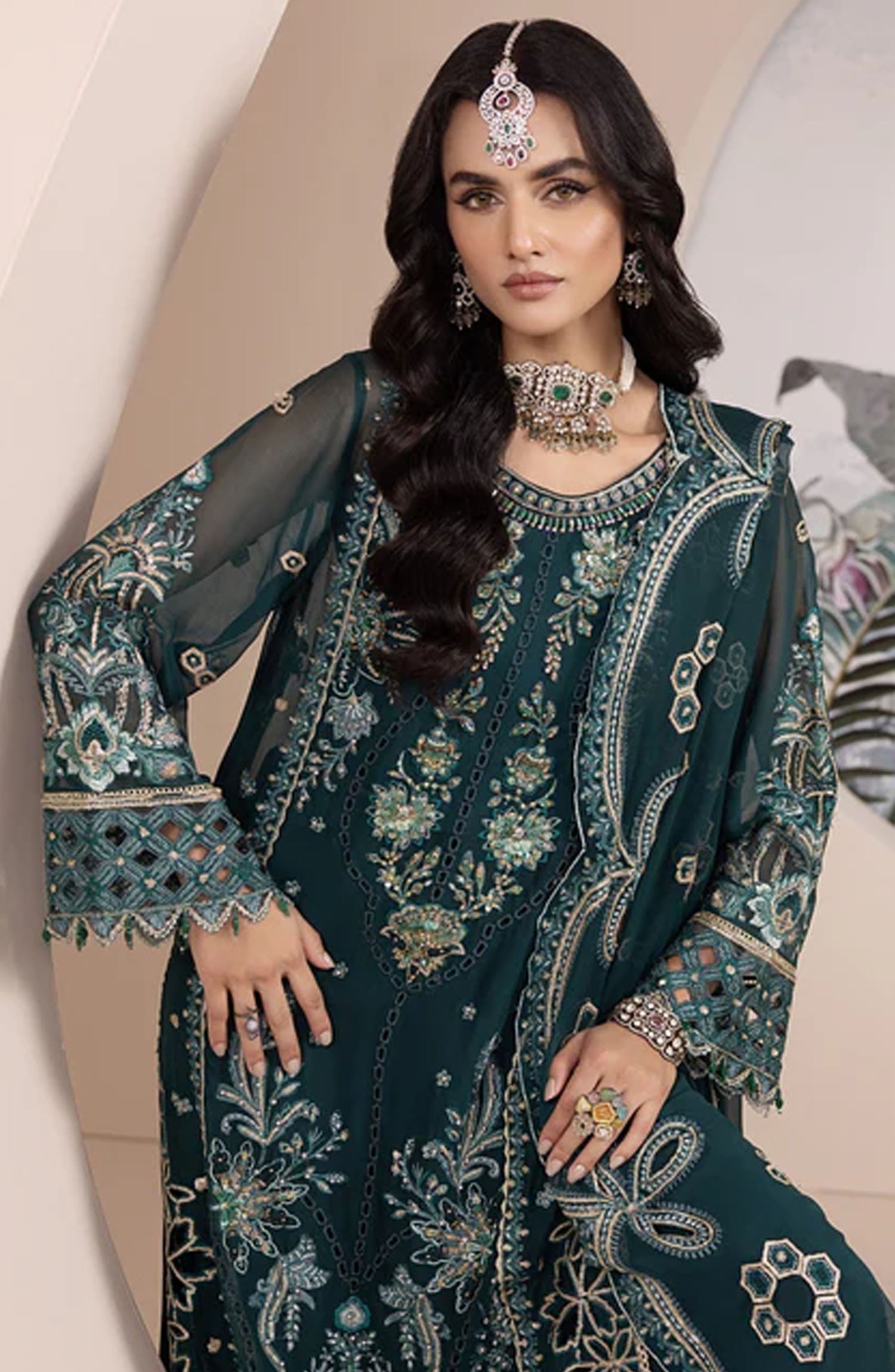 Aaraish by Diara Embroidered Chiffon Stitched 3 Piece Suit - SF-14 Zamurd - DC25AA - Green - Formal Collection