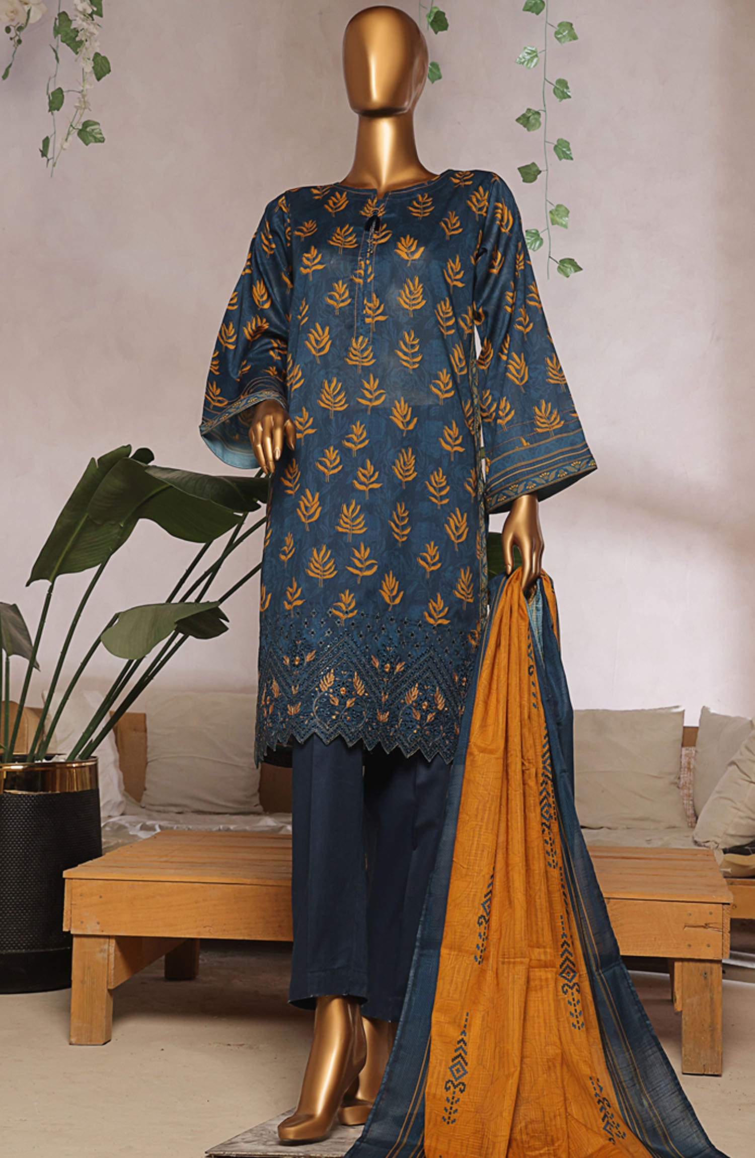 Digital Printed Embroidered Lawn Shirt With Highlights of Boring