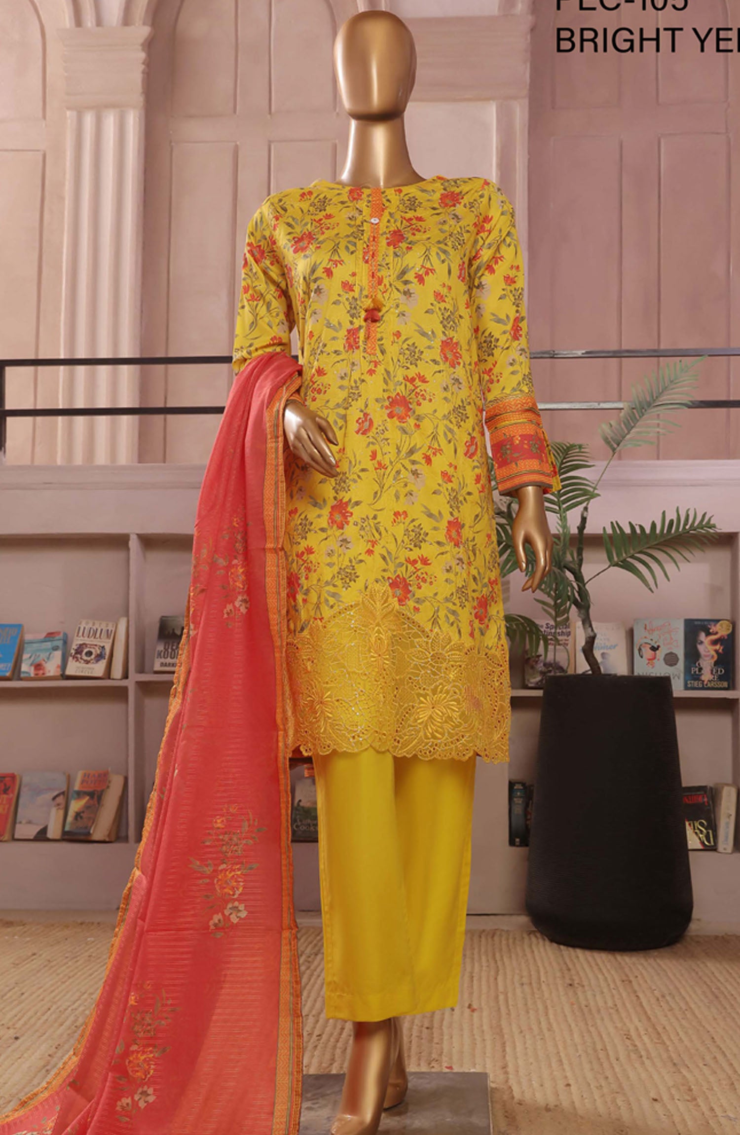 Home Aashkaaar by HZ Textile Embroidered Lawn Stitched 3 Piece Suit - PEC-105 Bright Yellow - HZ25ASHV3 - Yellow - Summer Collection