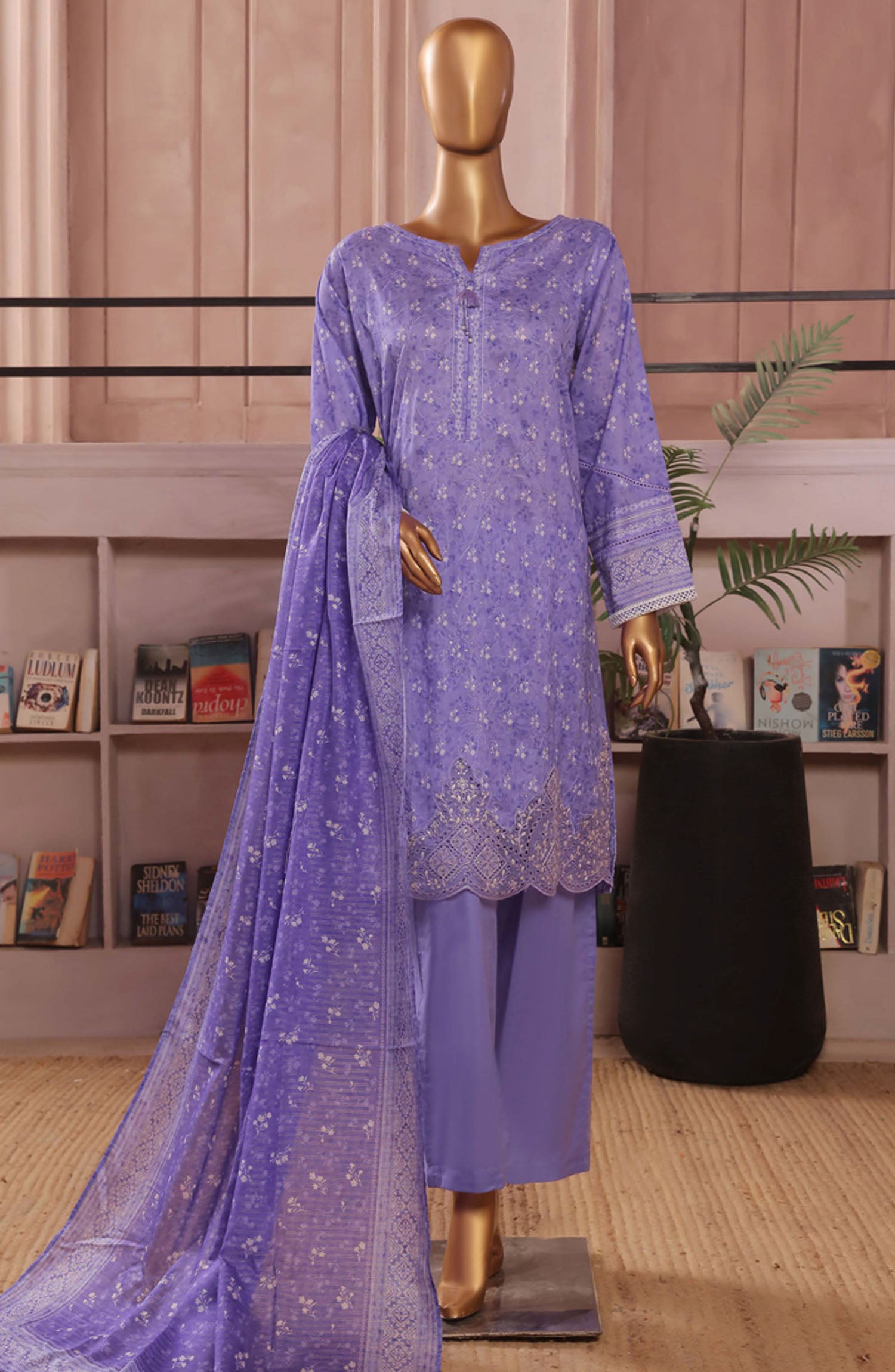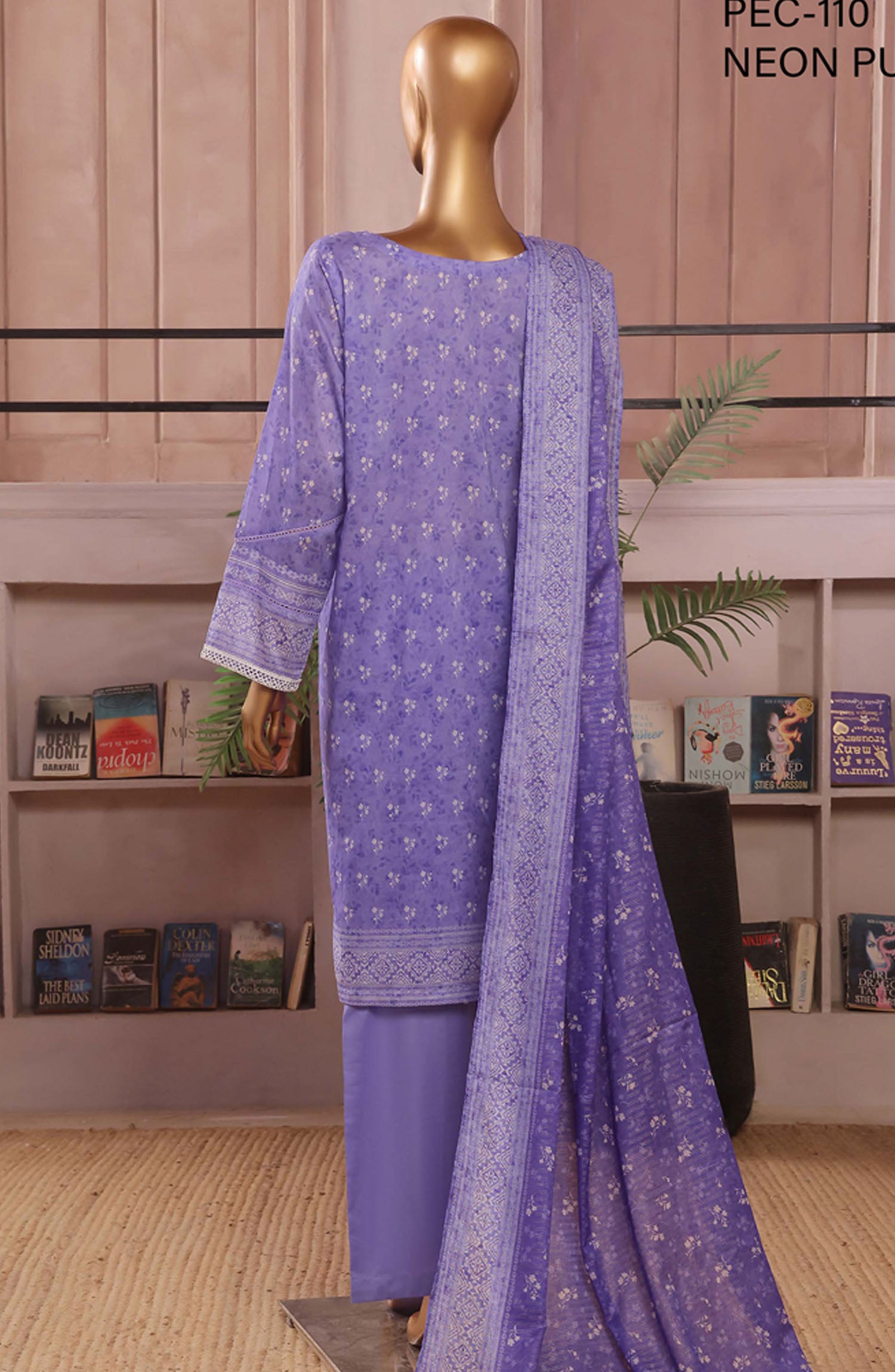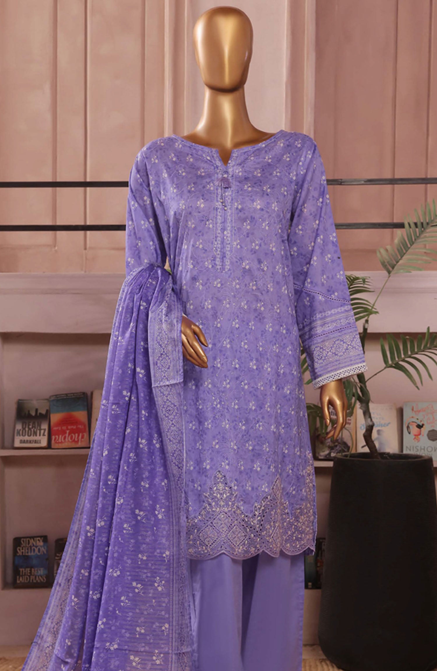 Home Aashkaaar by HZ Textile Embroidered Lawn Stitched 3 Piece Suit - PEC-110 Neon Purple - HZ25ASHV3 - Purple - Summer Collection