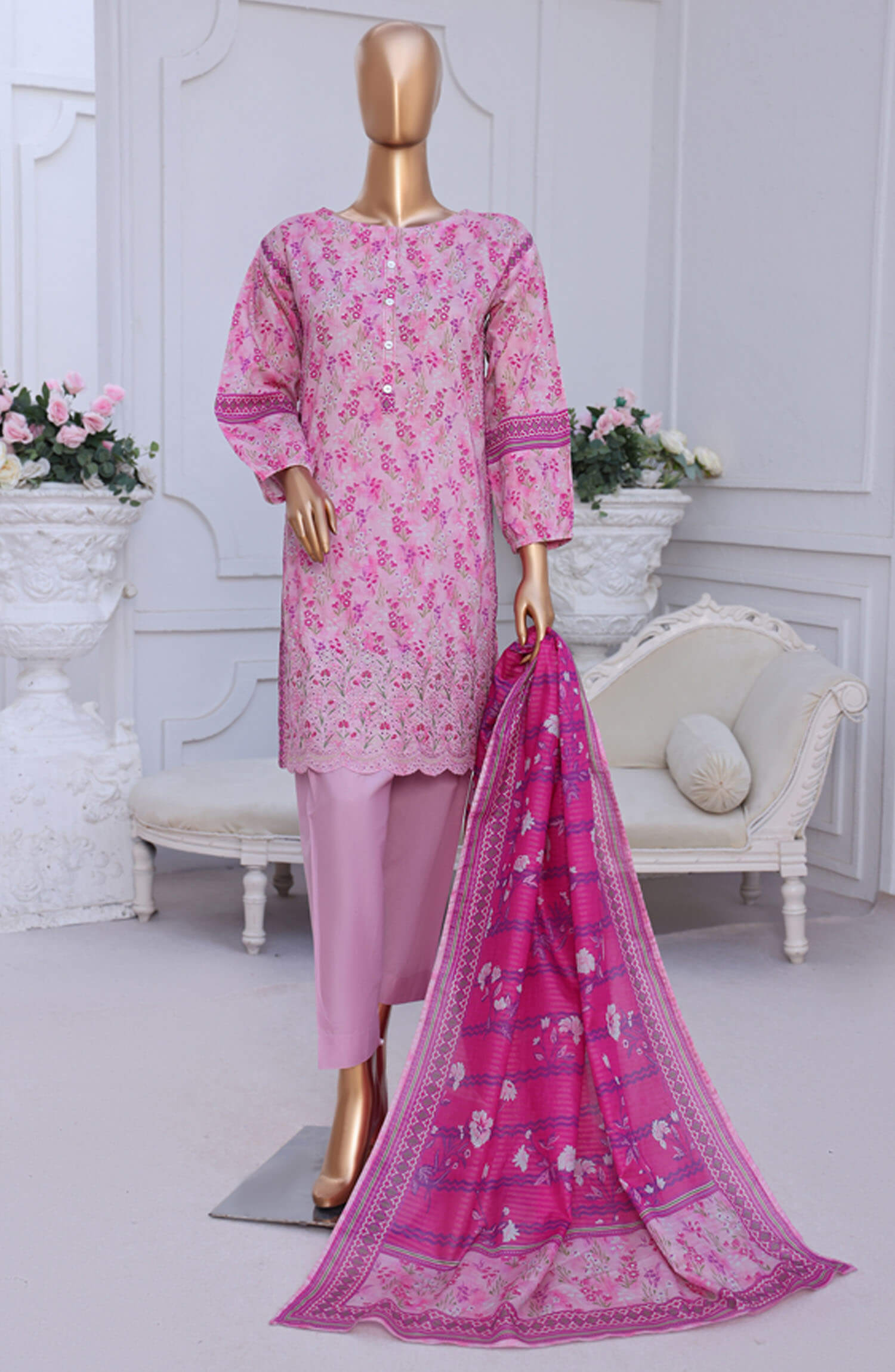 Home Aashkaar by HZ Textile Embroidered Lawn Stitched 3 Piece Suit - PEC-123 Mult Pink - HZ25ASHK - Pink - Summer Collection