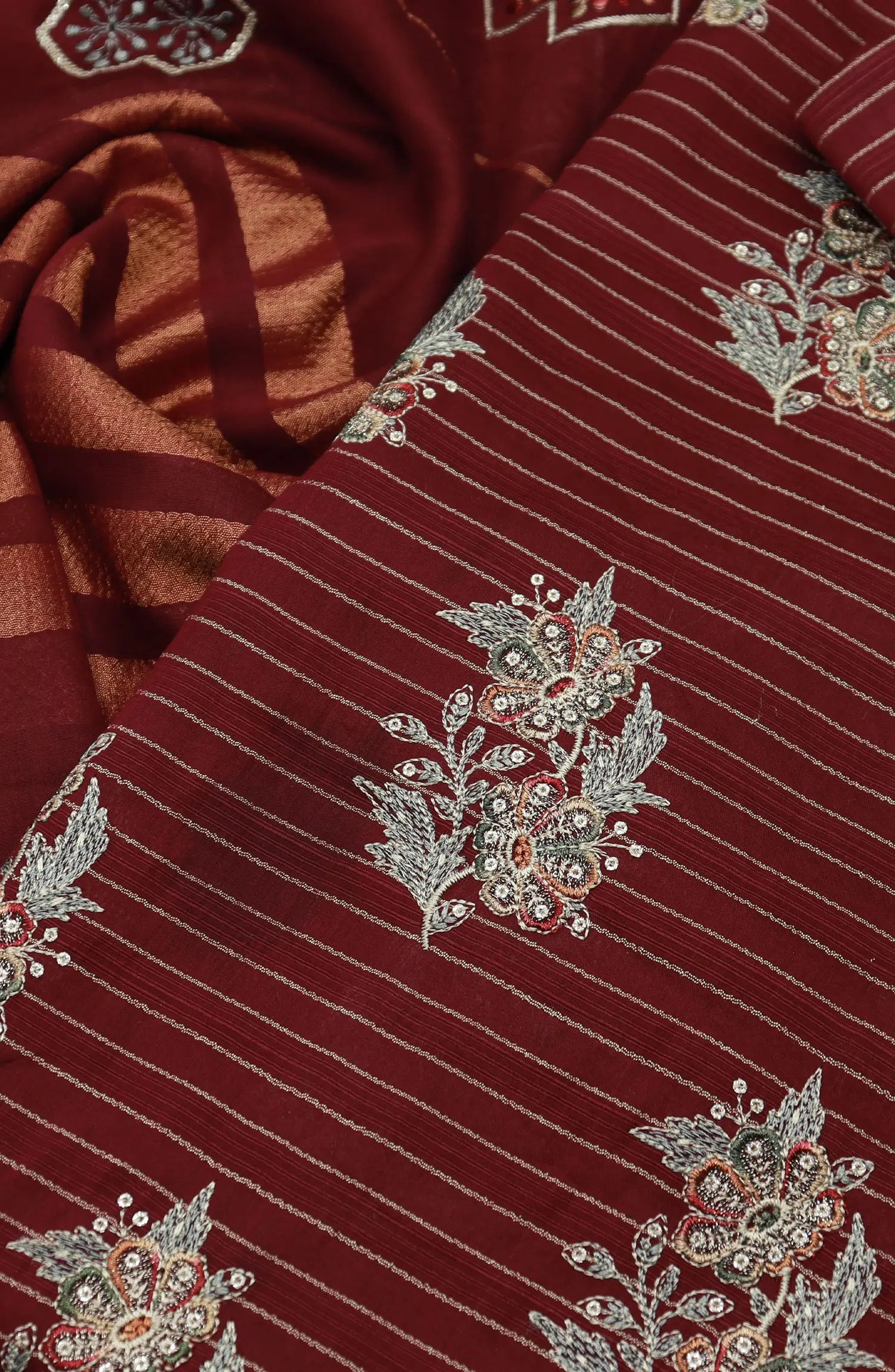 Mohar by Amna Khadija Embroidered Shamooz Silk Stitched 2 Piece Suit - AKMS-05 - AM25HARR - Maroon - Winter Collection