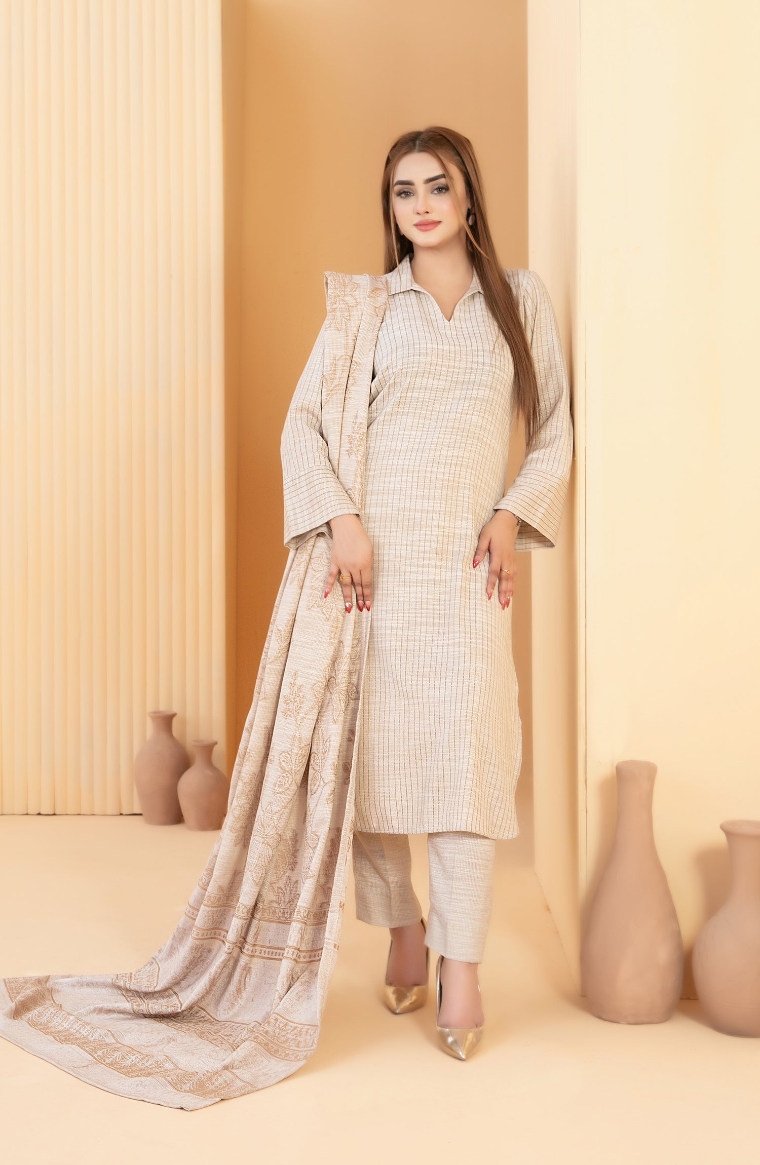 Unstitched Exclusive Fancy Leather Peach Shirt Fabric