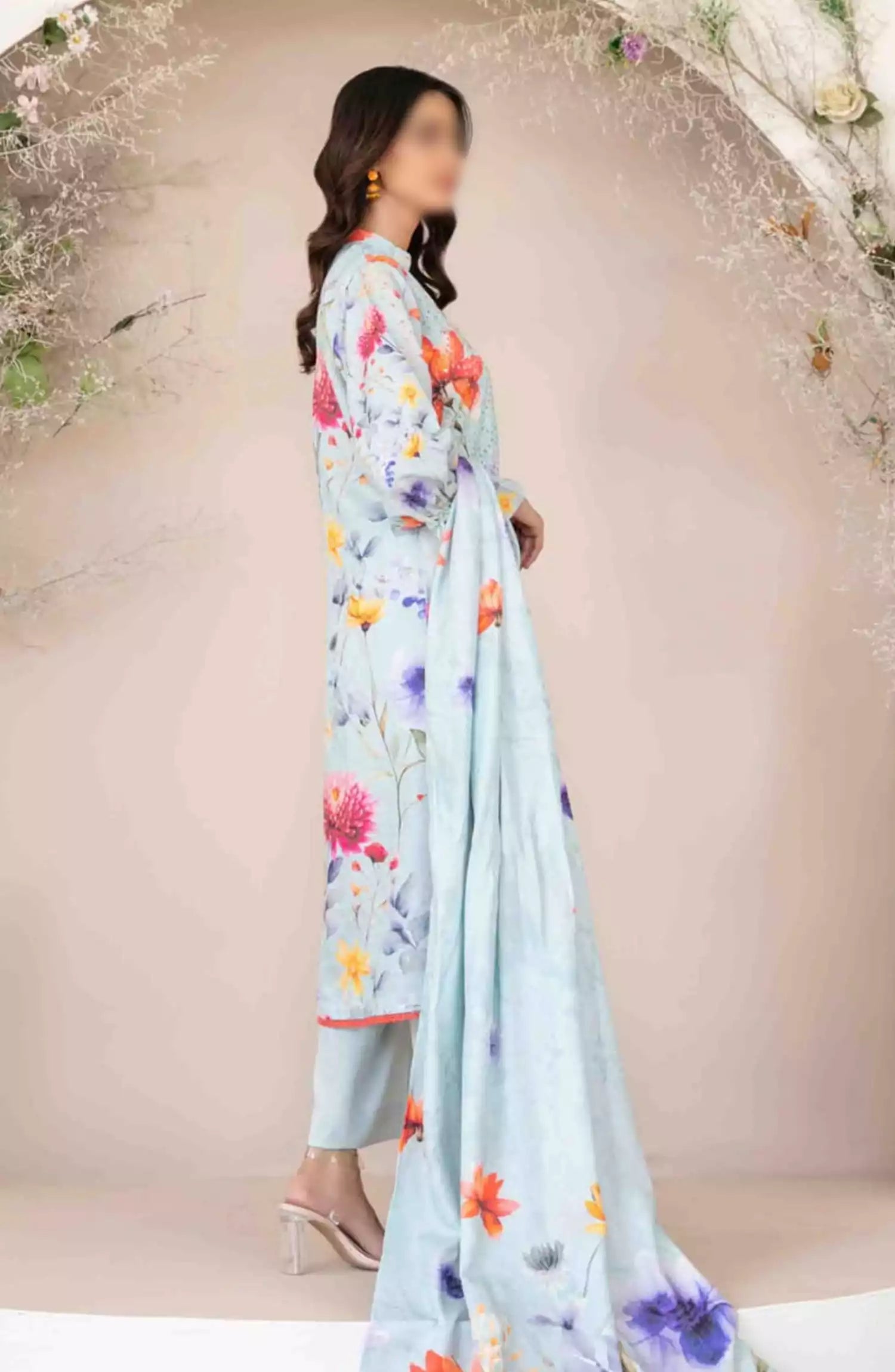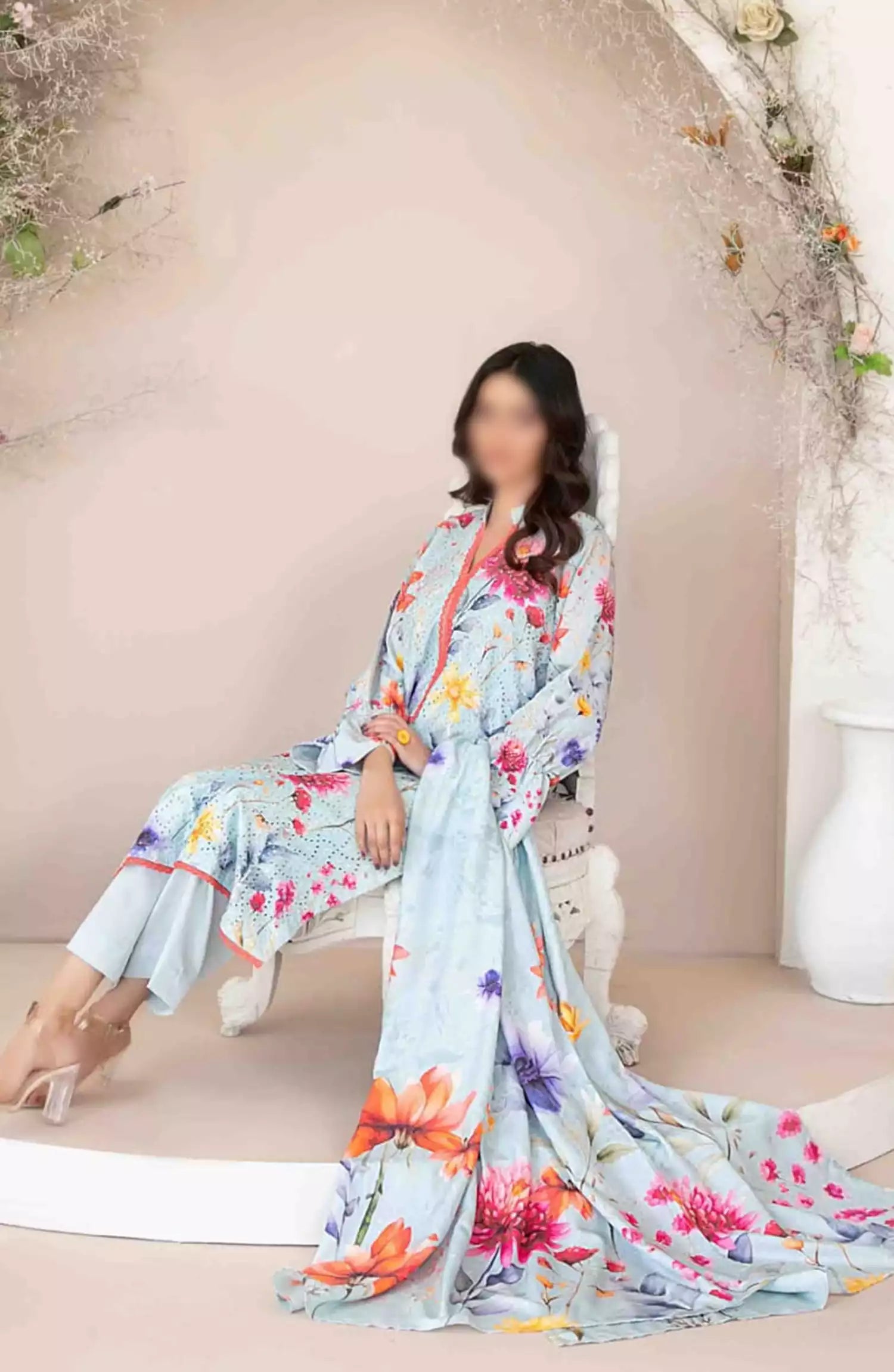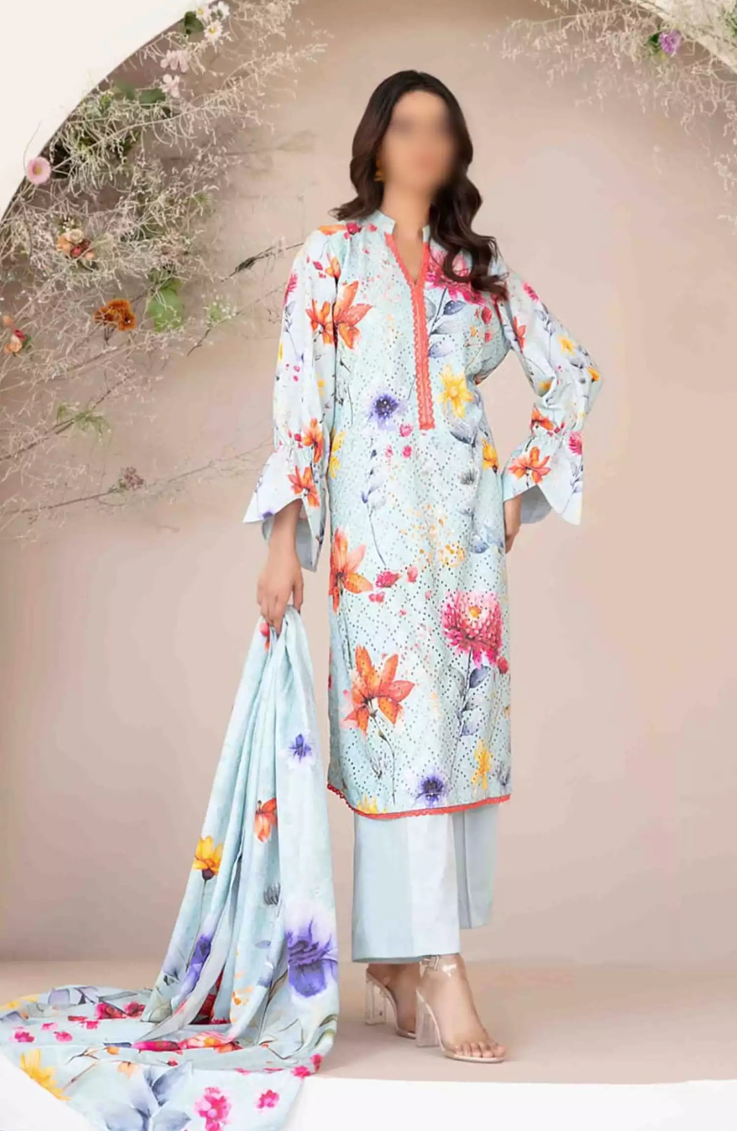 Abir - Embroidered Viscose Schiffli Collection has been styled in the image for photography and illustrative purposes.
