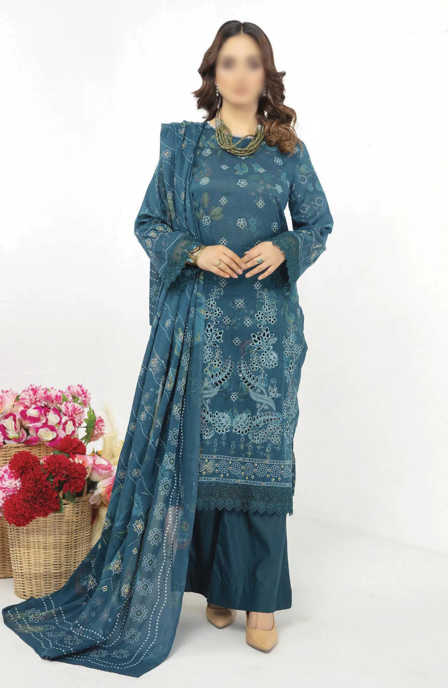 Abisha Printed and Embroidered Lawn Collection Vol 39 has been styled in the image for photography and illustrative purposes.