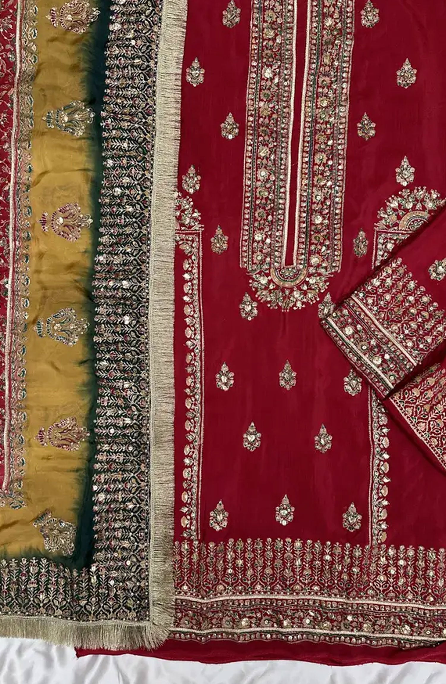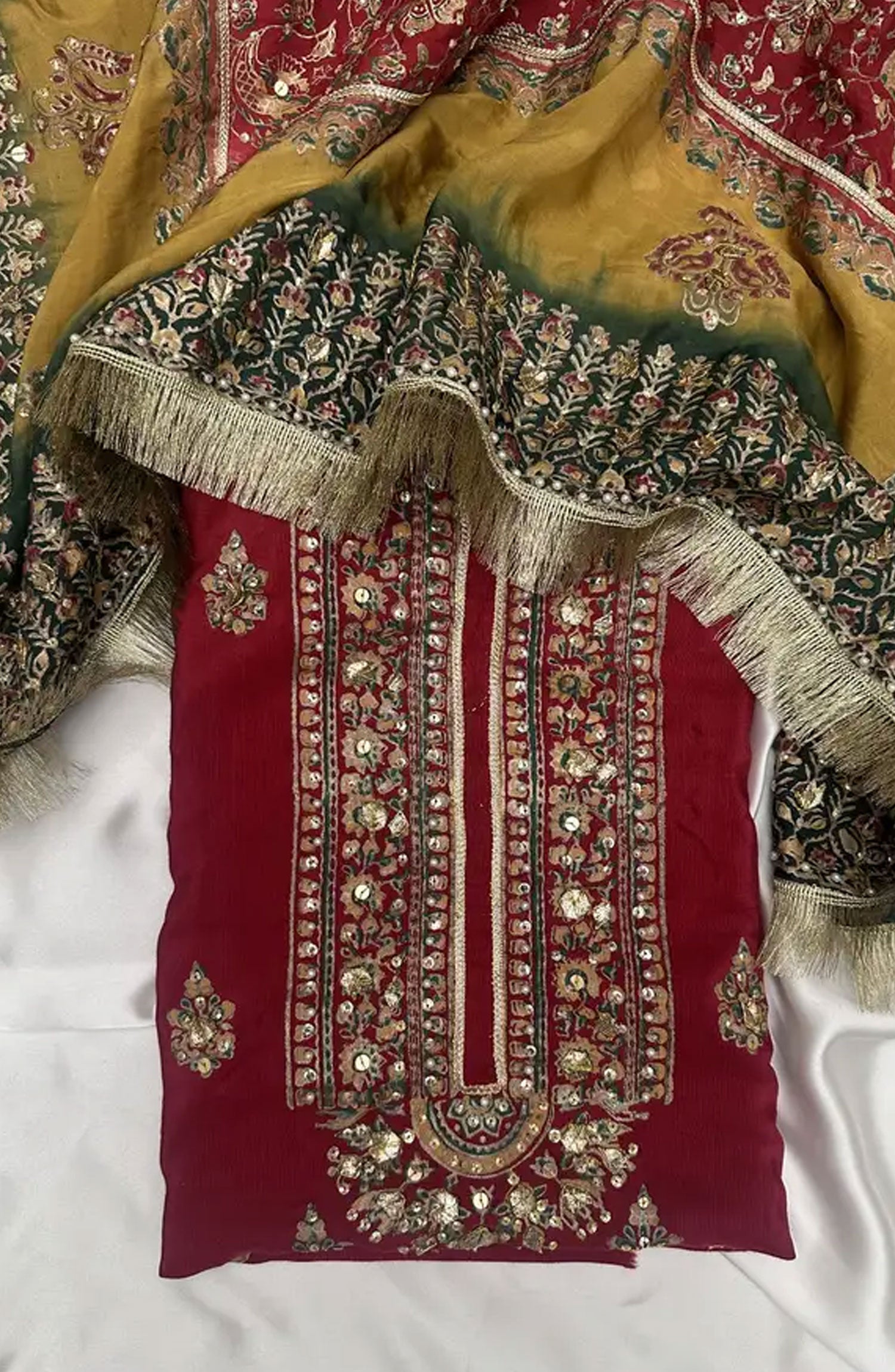 3 Piece Embroidered Unstitched Raw Silk Suits