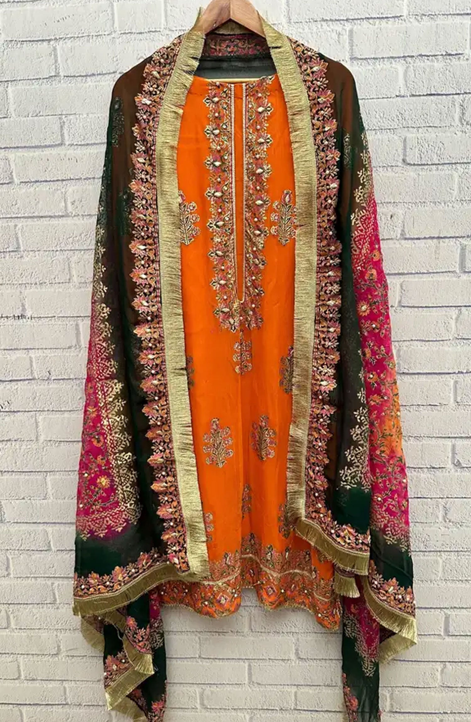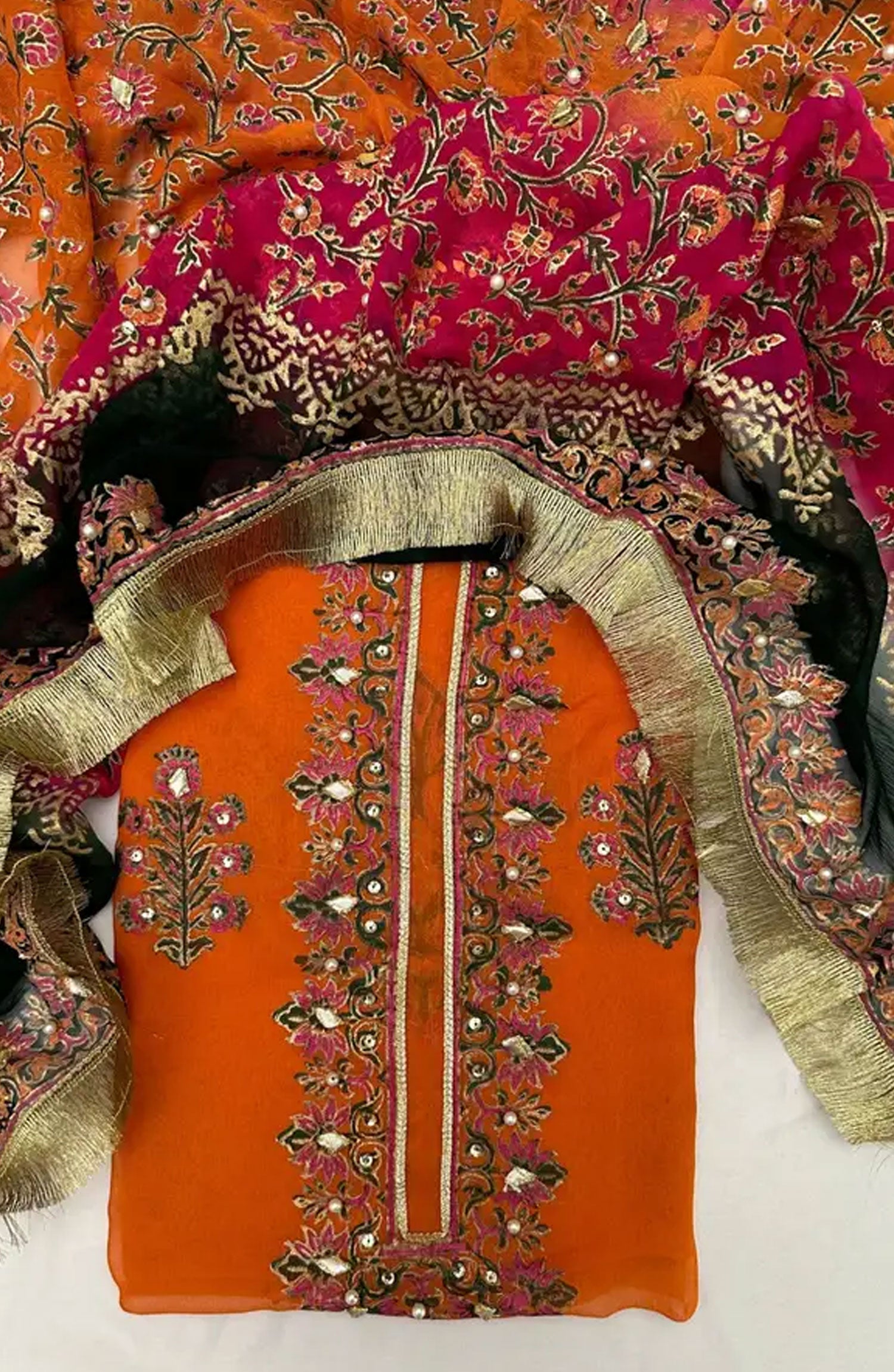 3 Piece Embroidered Unstitched Raw Silk Suits