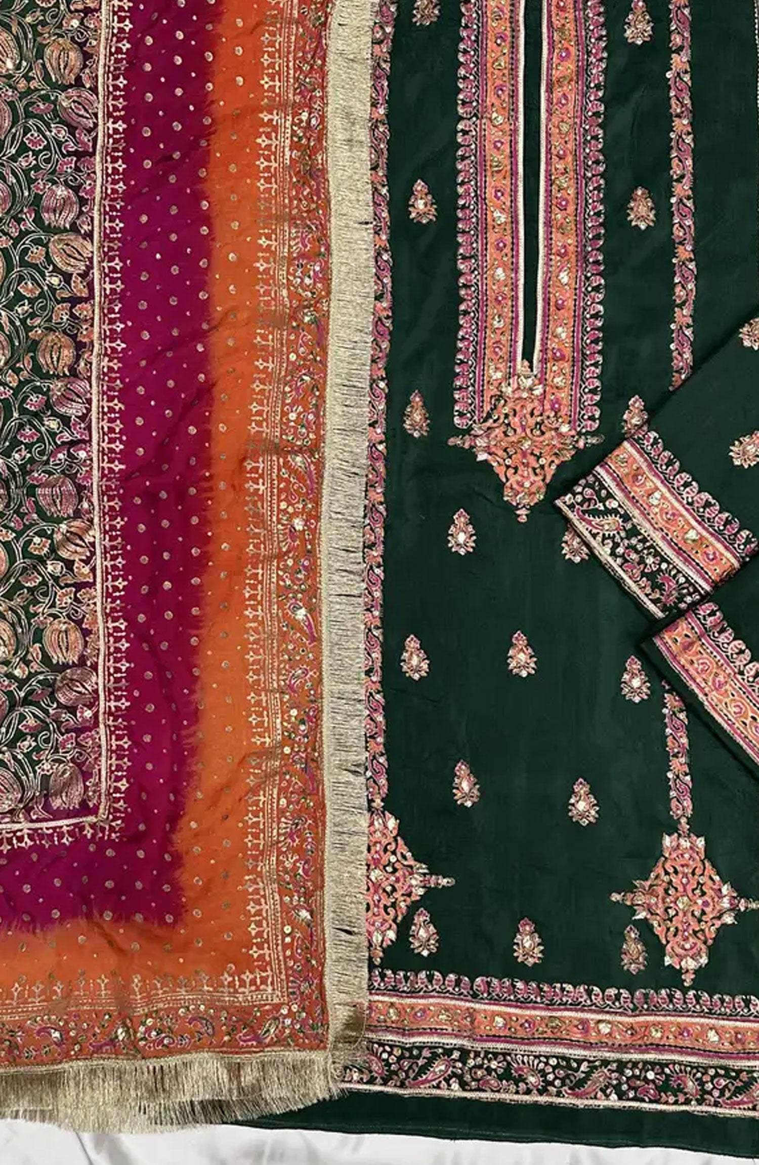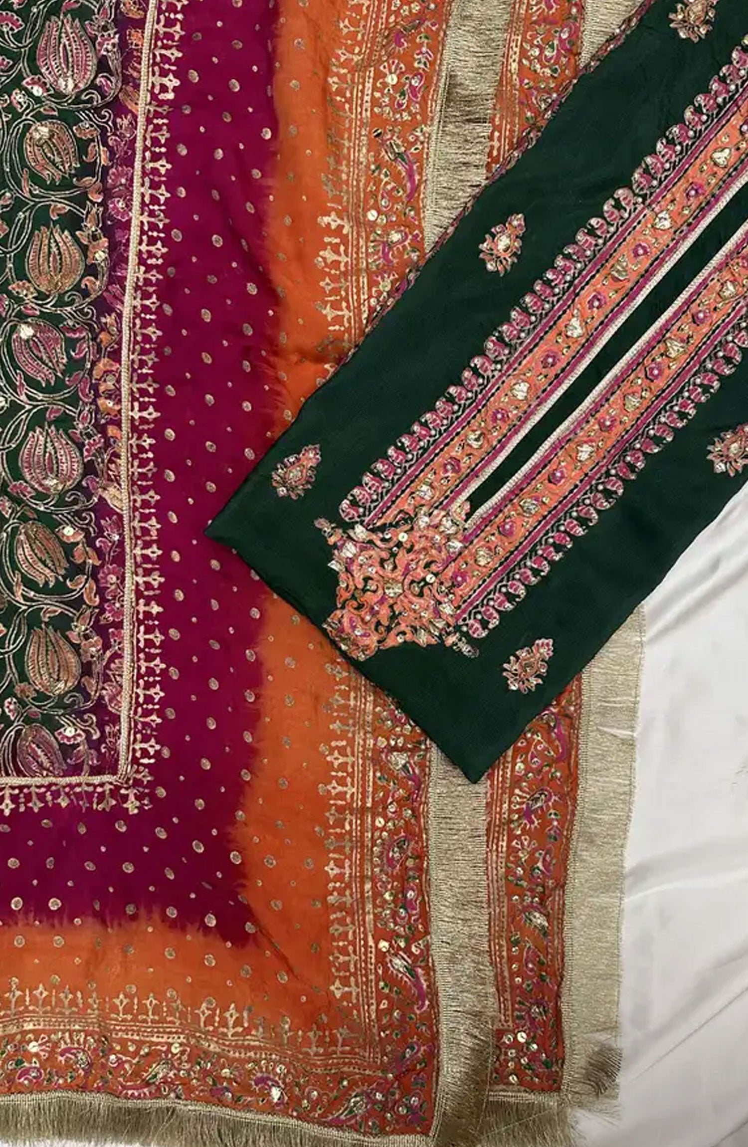 3 Piece Embroidered Unstitched Raw Silk Suits