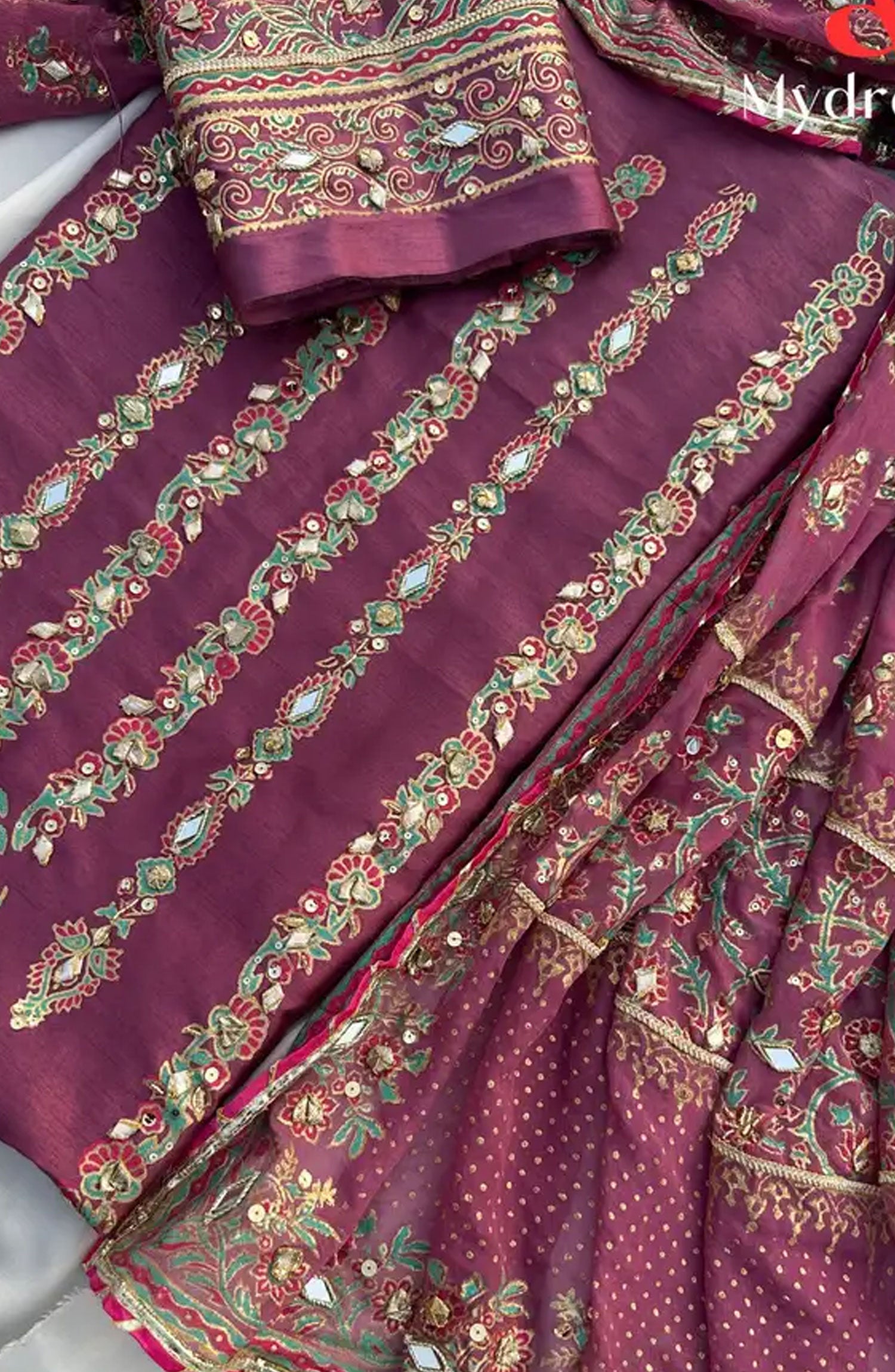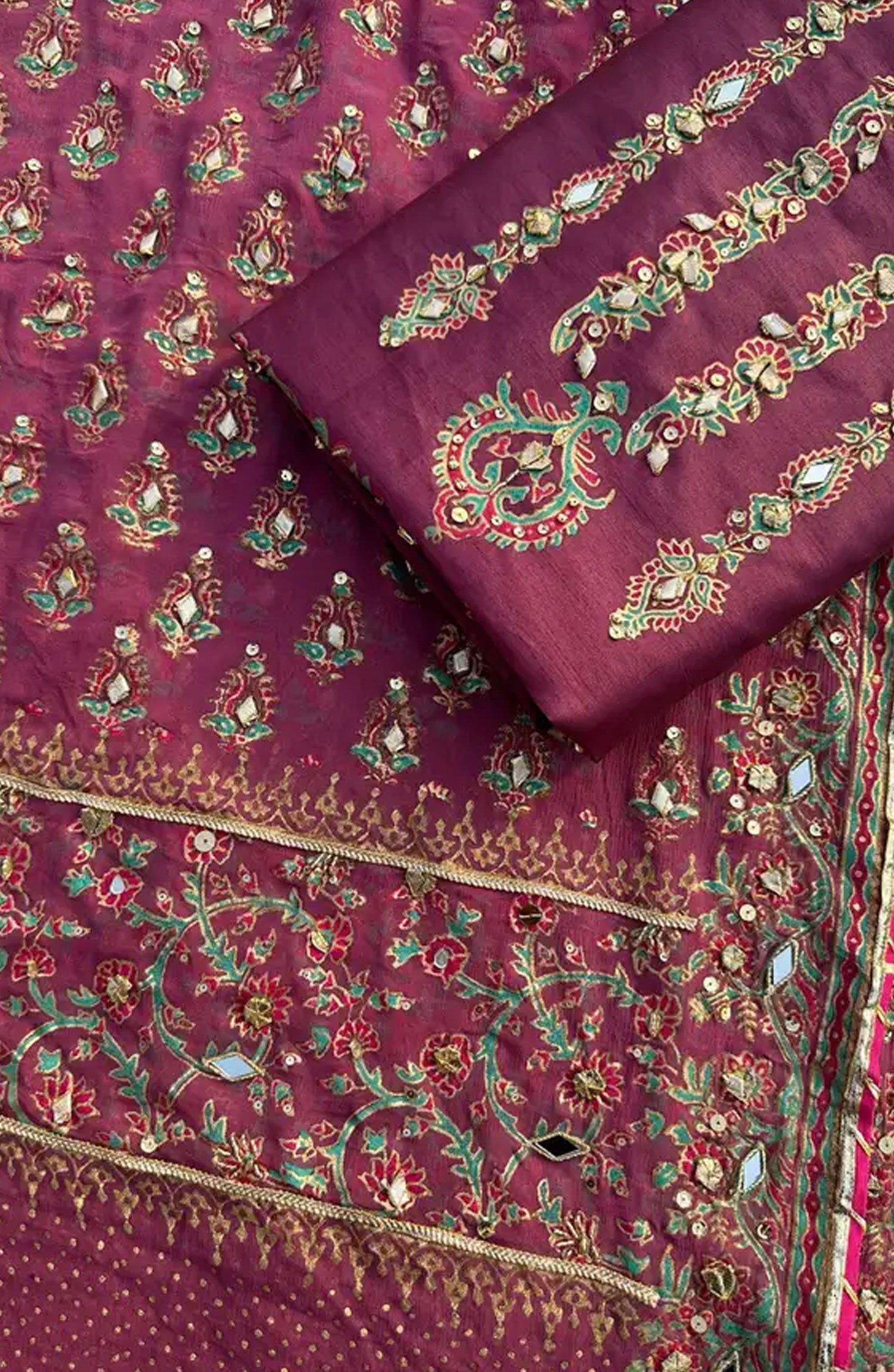 3 Piece Embroidered Unstitched Raw Silk Suits