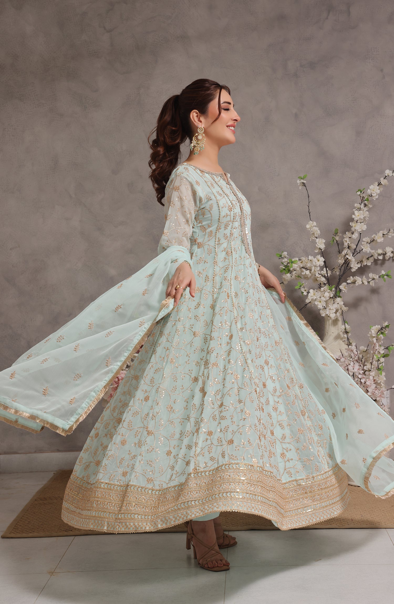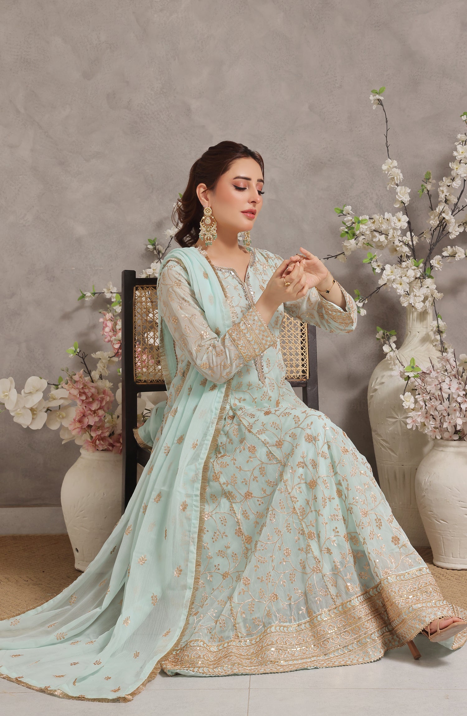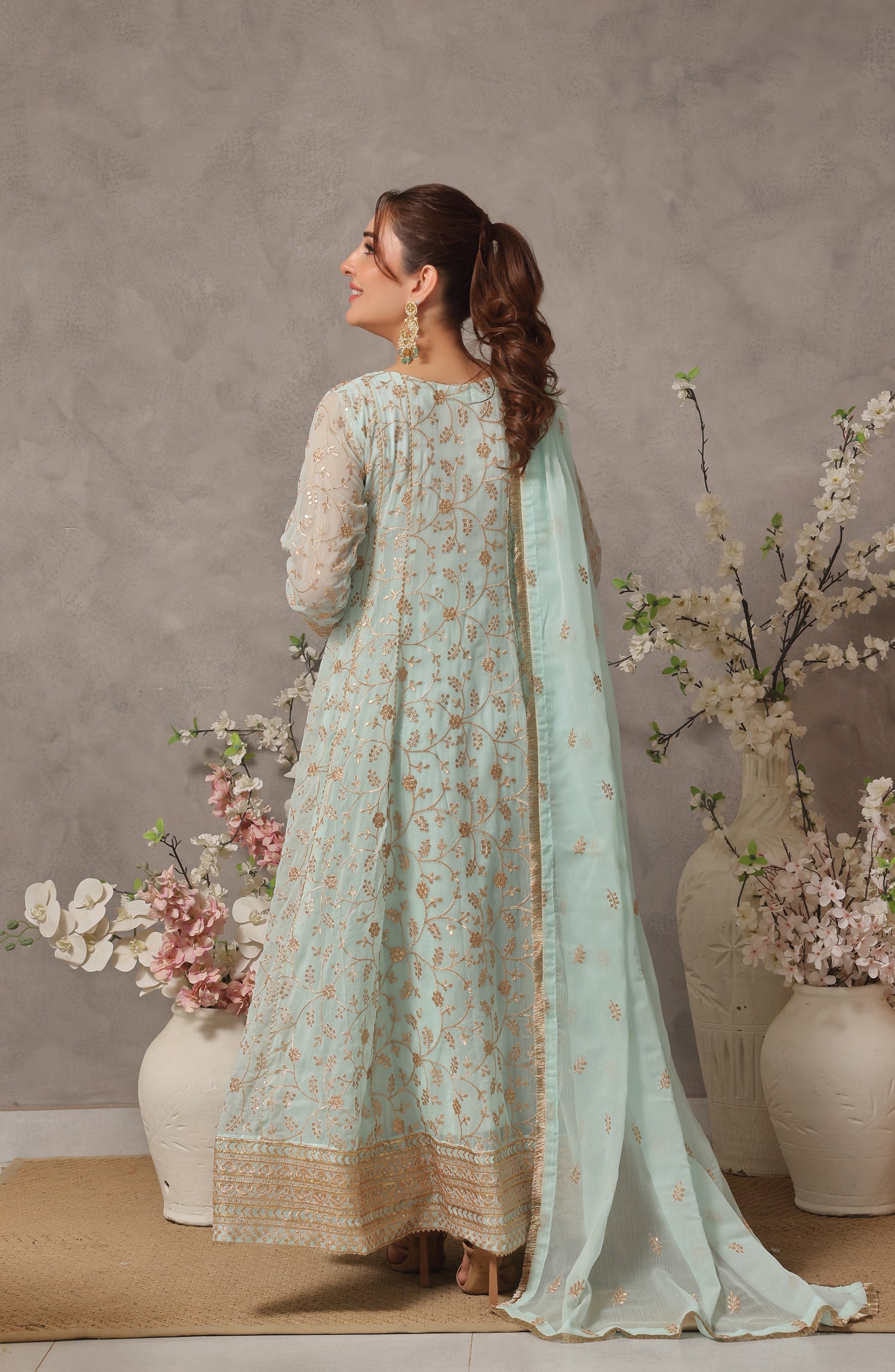 Home Adaa-e-Khaas by Al Siyaab Luxury Embroidered Chiffon Stitched 3 Piece Suit - HAANI Mint Green - ALS25ADK - Mint Green - Formals Collection