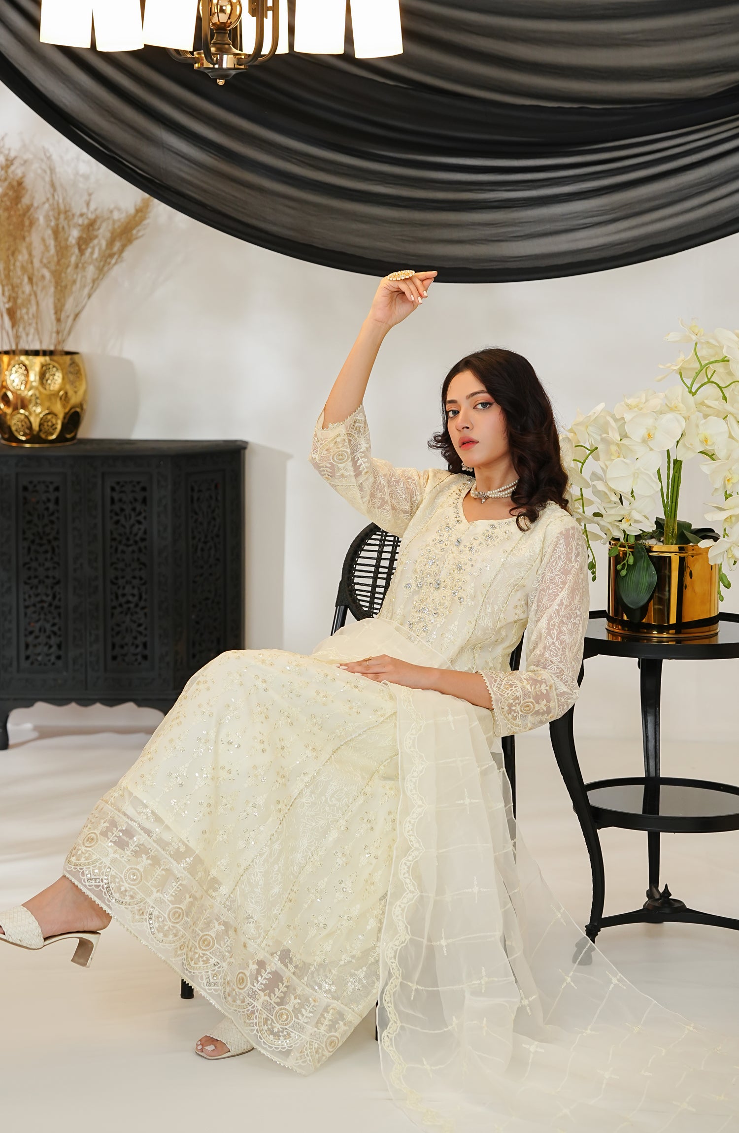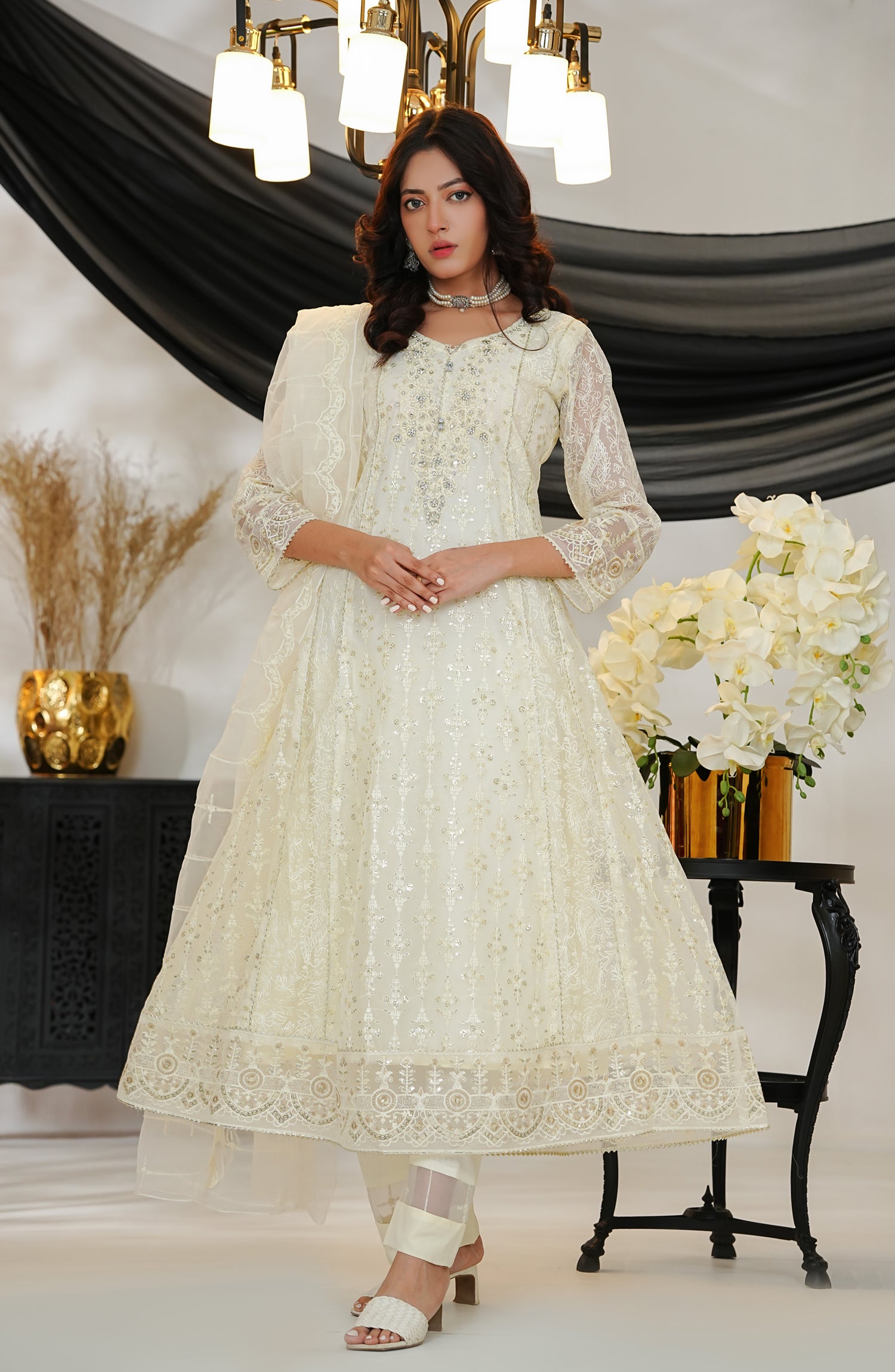 Luxury Formals Embroidered Khaddi Net Stitched 3 Piece Suit