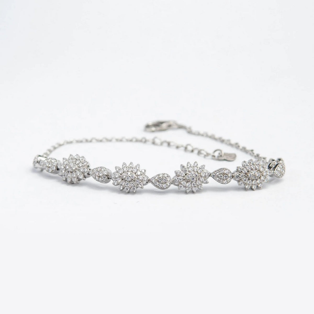 The bracelet features a series of oval-shaped cubic zirconia stones that sparkle and shine with unparalleled brilliance. These stones are meticulously set within the silver links, creating a captivating and glamorous design.