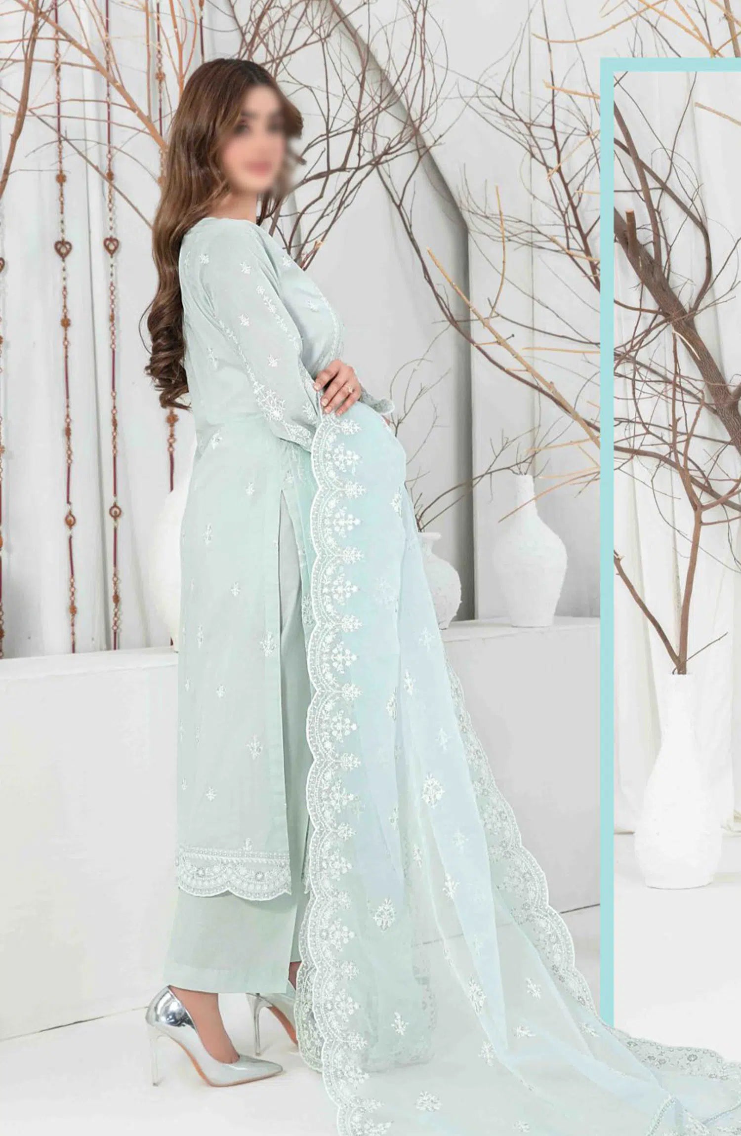 AENI Semi Stitched Fancy Embroidered Lawn Collection 2024 has been styled in the image for photography and illustrative purposes.