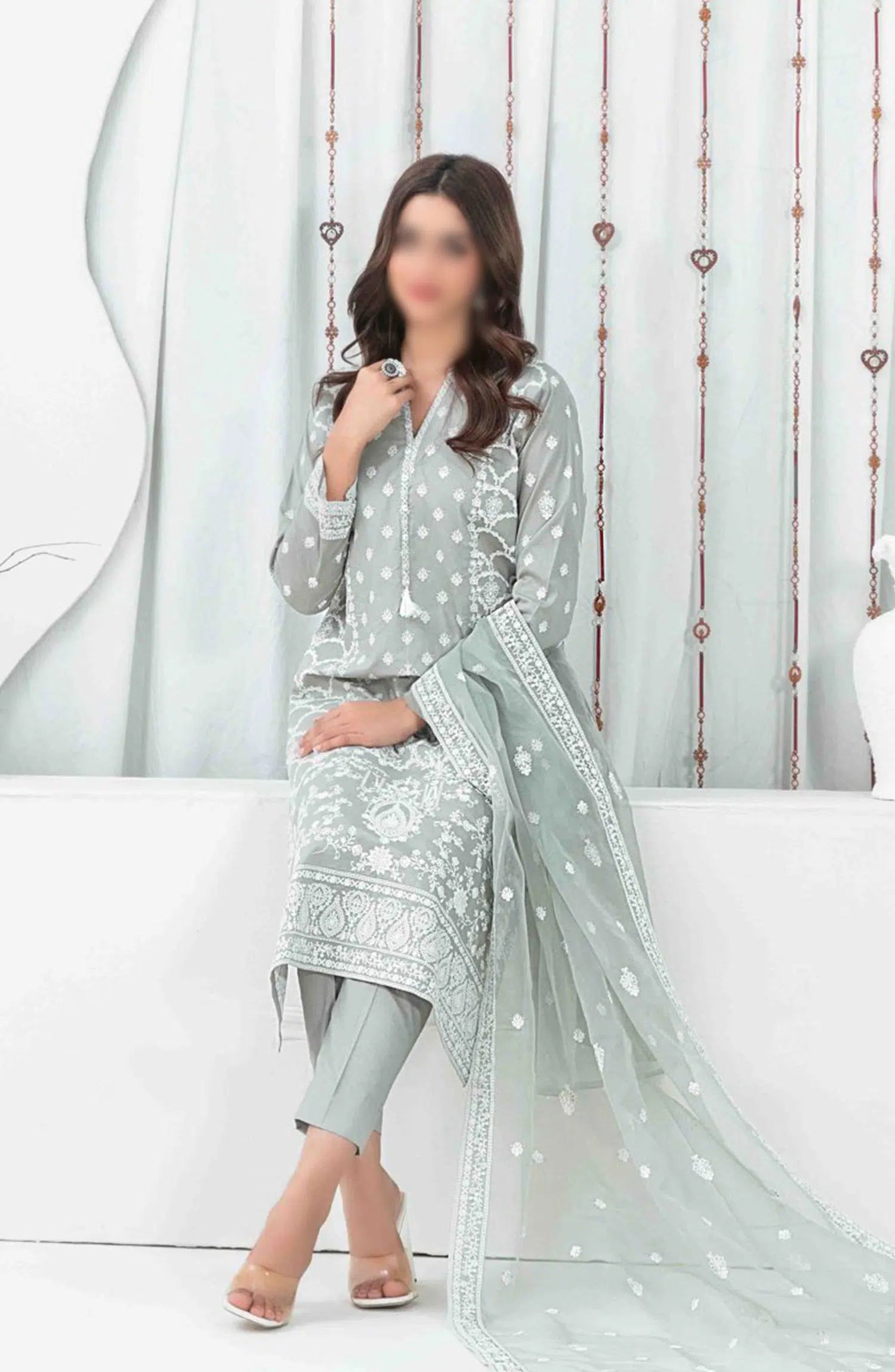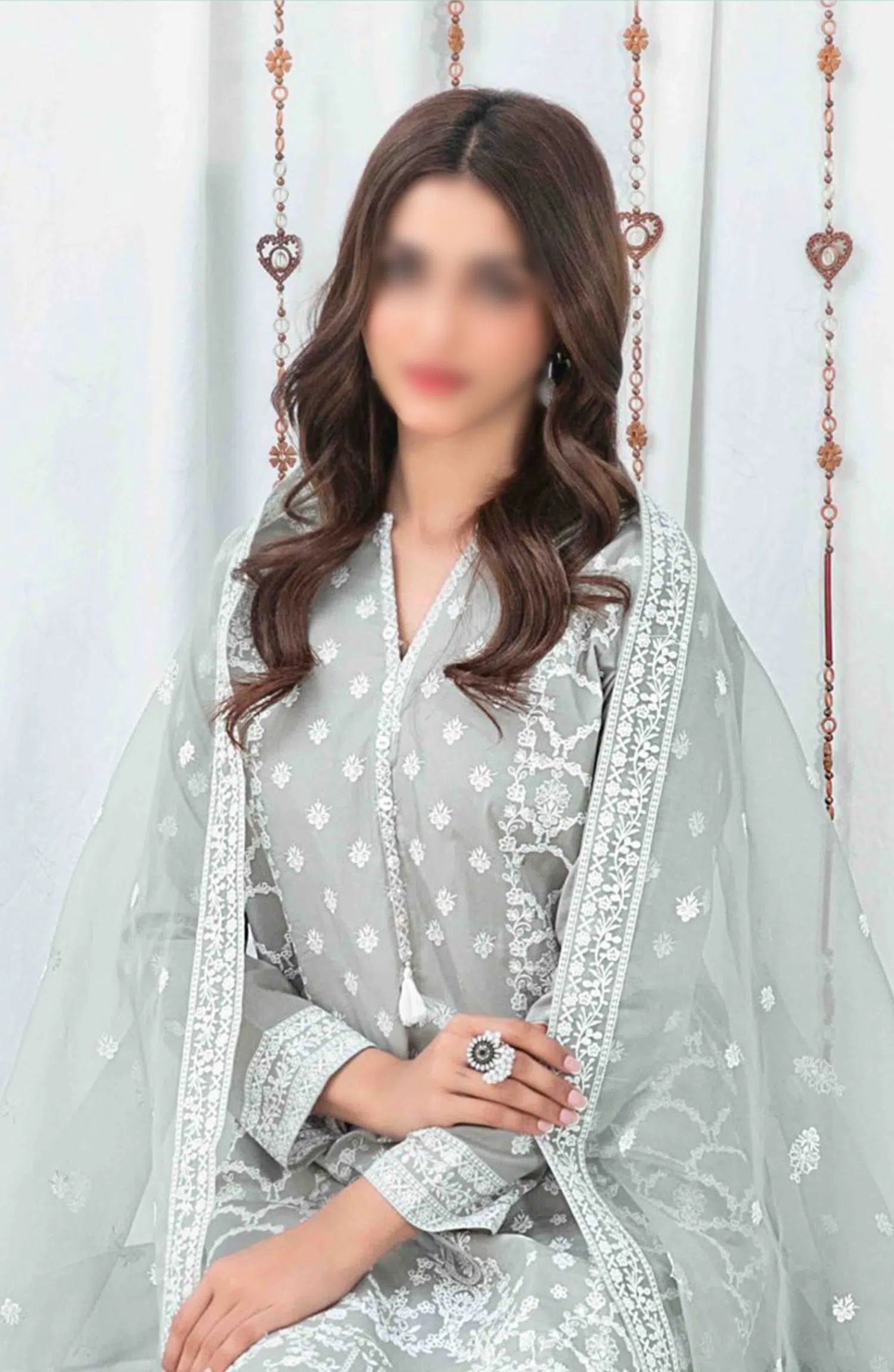 Semi-Sticthed Fancy Embroidered Lawn Shirt with Embellishments