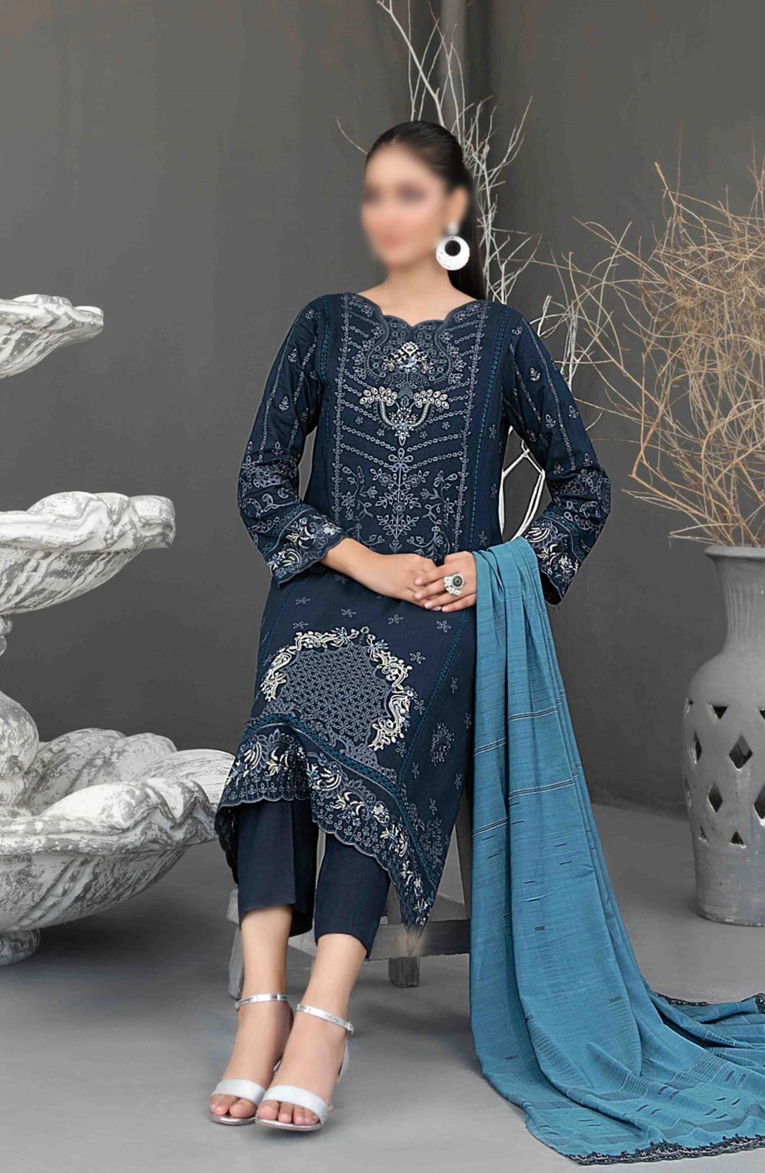 Home Aezal Fancy Embroidered Slub Viscose Collection 2024 - D 3621