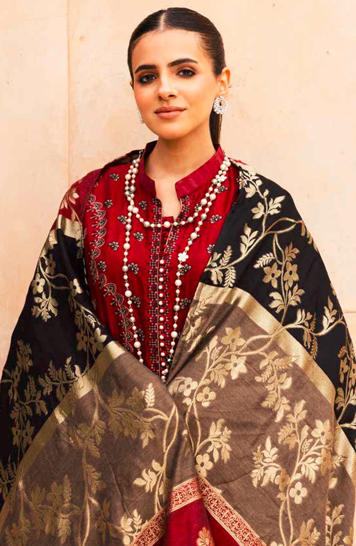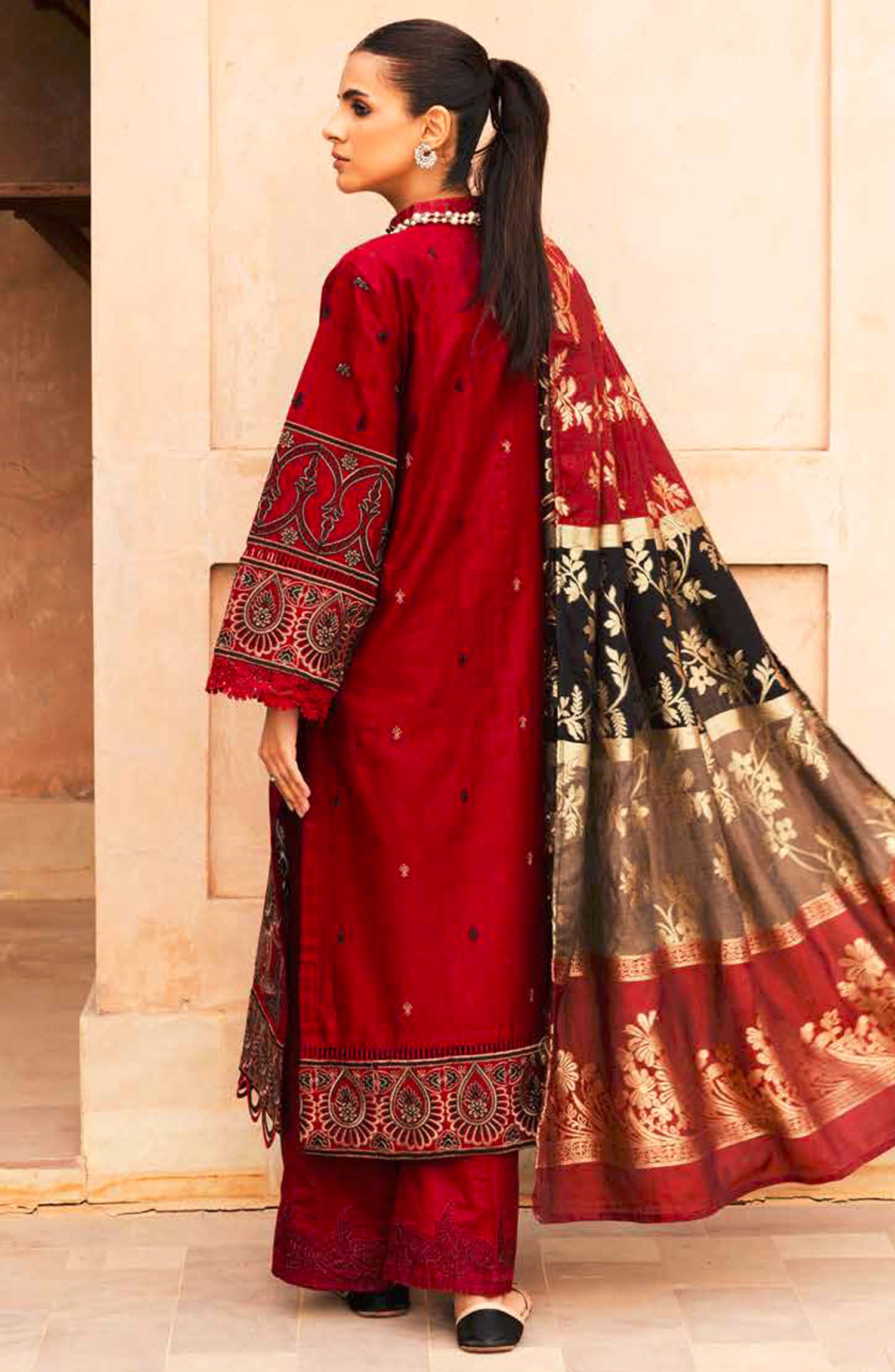 Modest Embroidered Khaddar Stitched 3 Piece Suit - 10050-Mar - MOD25WNT - Maroon - Winter Collection