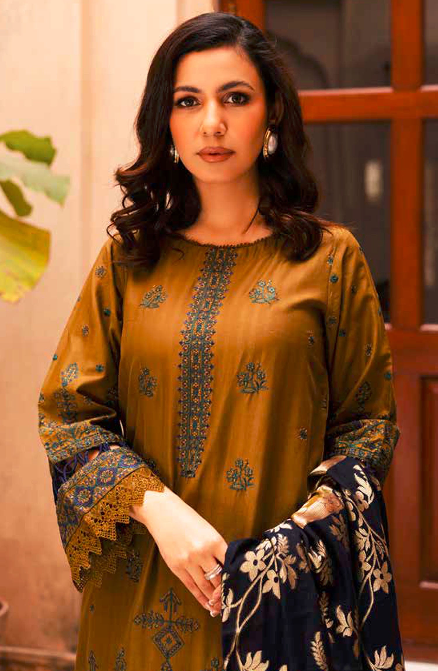 Modest Embroidered Khaddar Stitched 3 Piece Suit - 10000-Brn - MOD25WNT - Brown - Winter Collection
