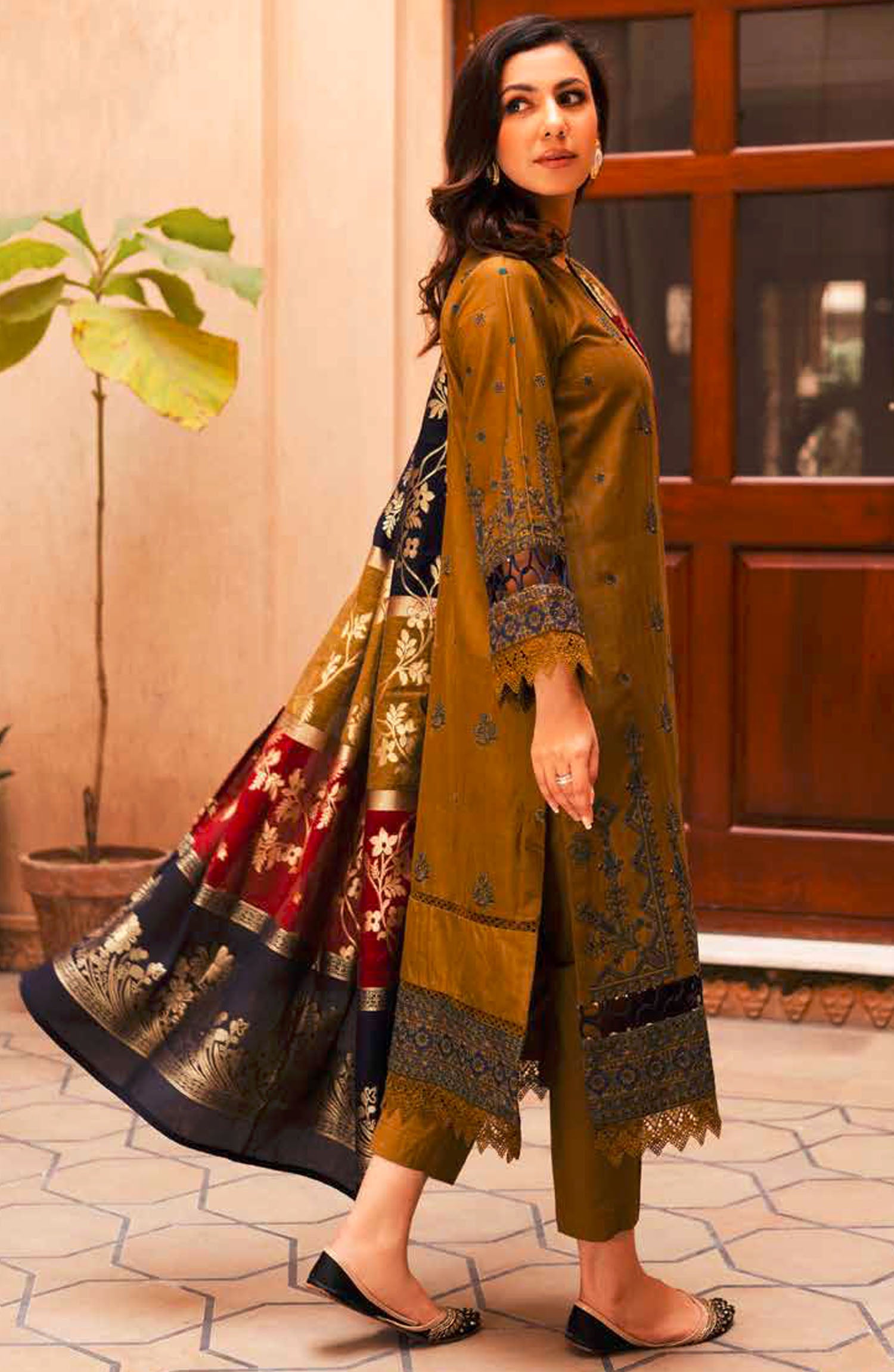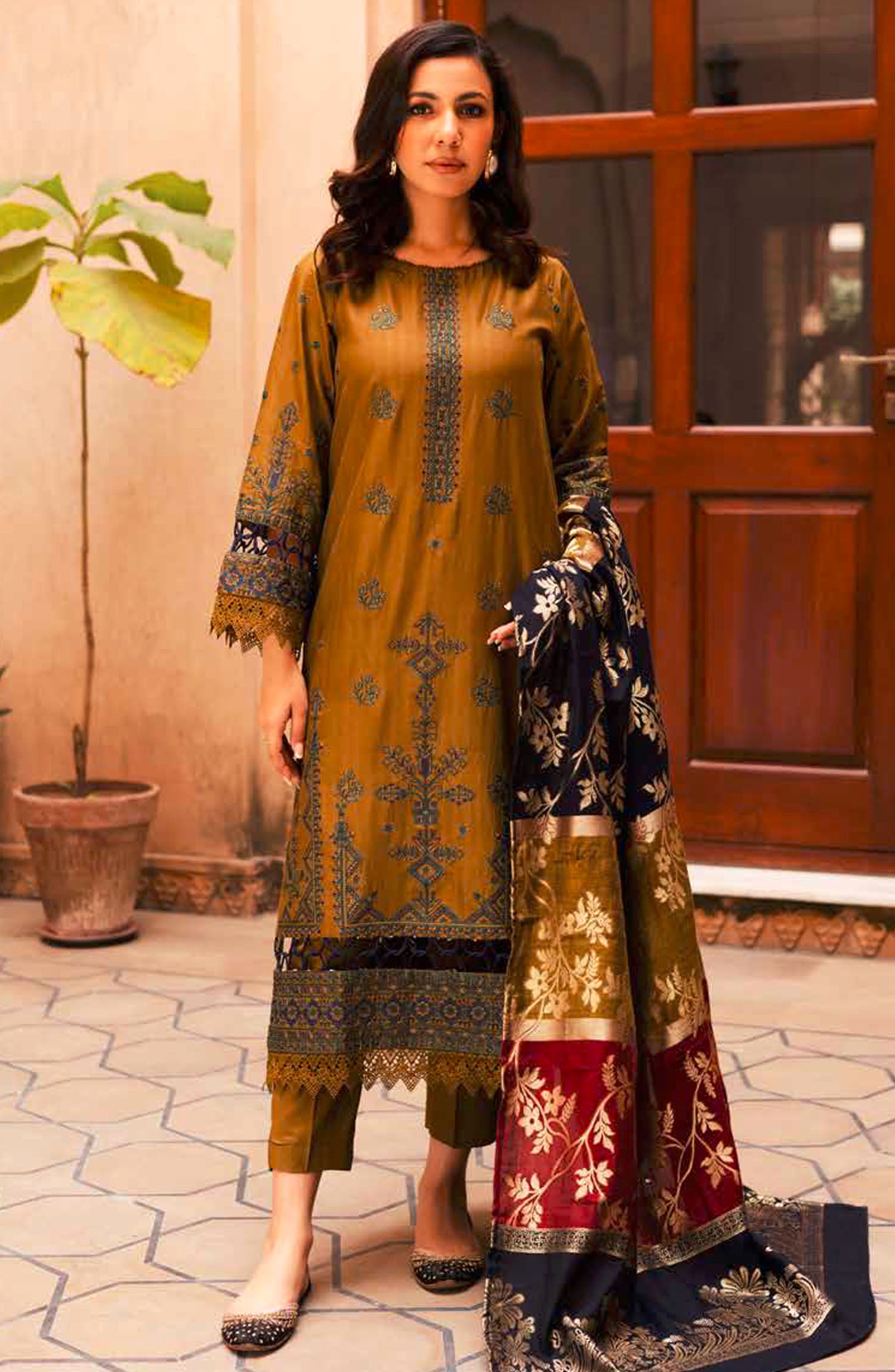 Afeefa by Johra Embroidered Lawn Unstitched 3 Piece Suit - JH-166 - JH25AFL - Mustard - Summer Collection