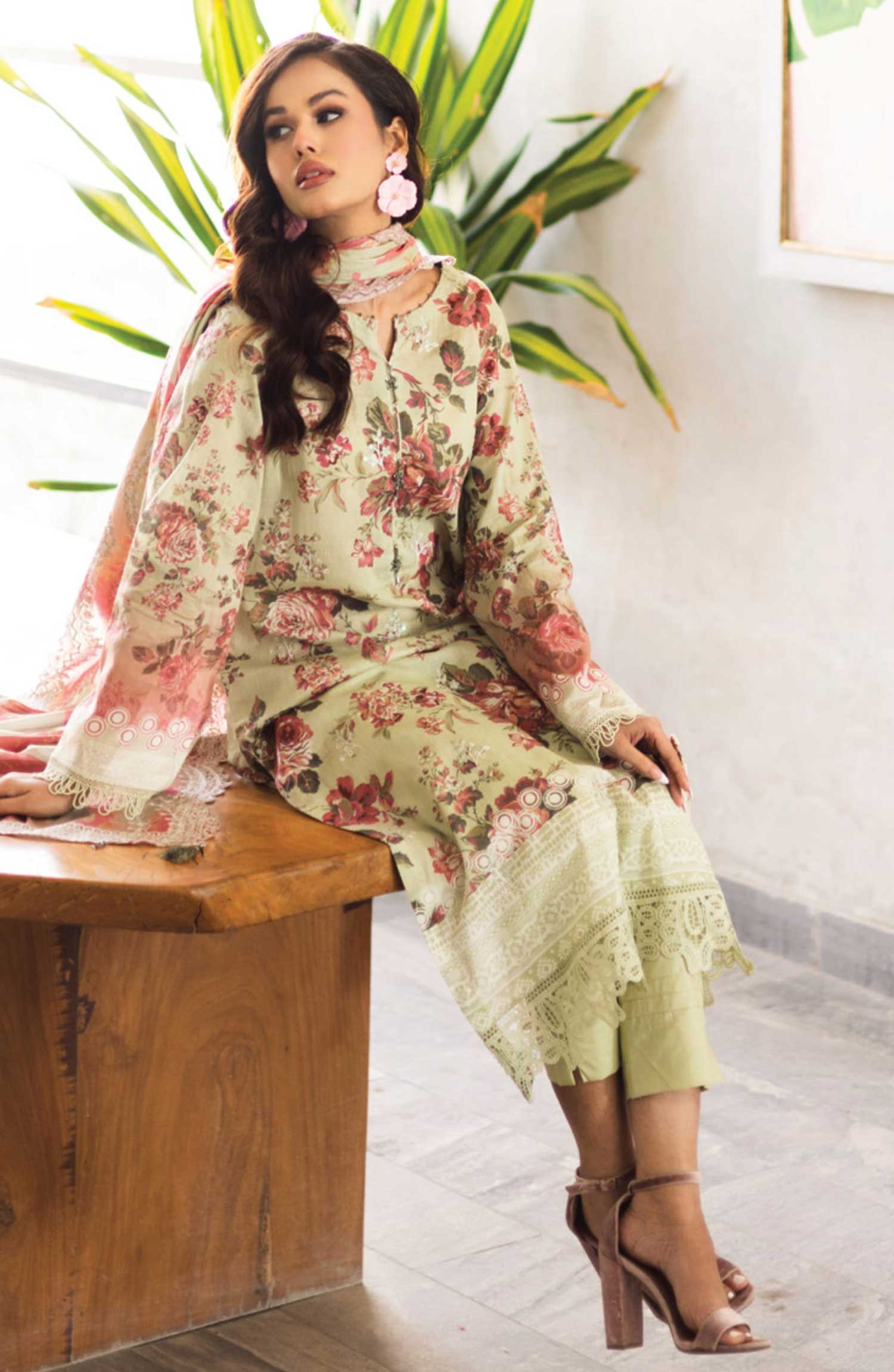 Home Afreen by Riaz Arts Embroidered Lawn Unstitched 3 Piece Suit - AF-164 - RA25AL - Pista Green - Summer Collection